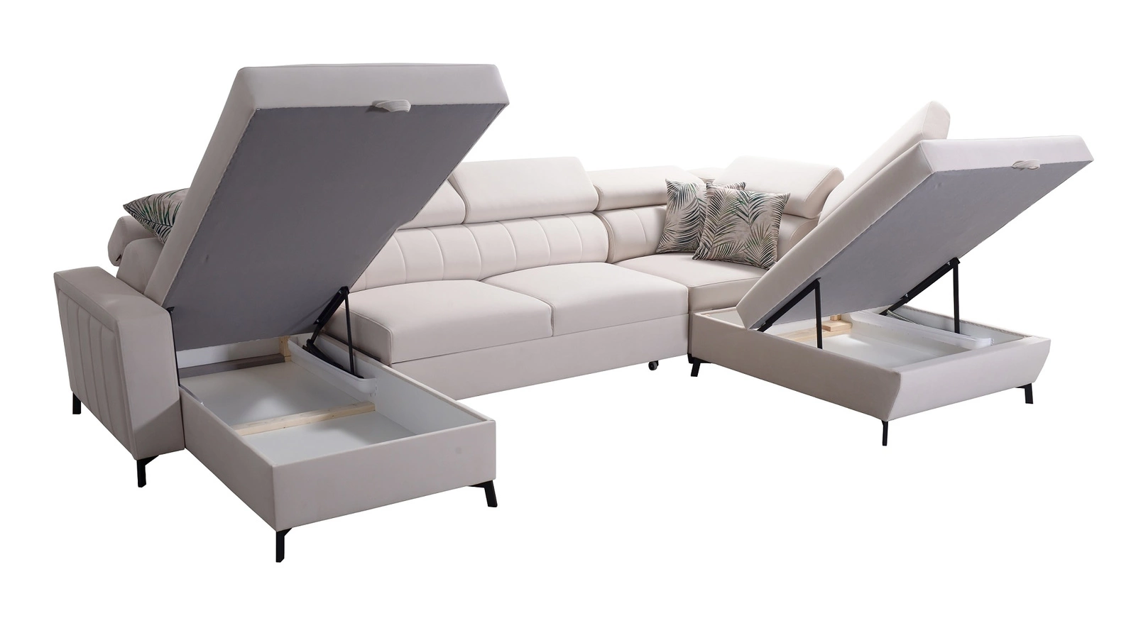 Mezi doplňky tohoto nábytku, které ocení všichni uživatelé, patří dvě nádoby na lůžkoviny, funkce spaní a nastavitelné opěrky hlavy.