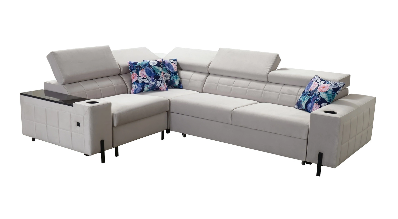 Vlnité pružiny a polyuretanová pěna T30 je materiál, z něhož je vyrobeno sedadlo rohu. Pevné opěradlo s nastavitelnými opěrkami hlavy umožní snadné adaptace úhel opěrek hlavy podle vašich preferencí a zaručí vám pohodlný odpočinek po dlouhém dni, který oceníte vy, vaši blízcí i hosté, kteří se na tuto jedinečnou rohovou pohovku posadí!