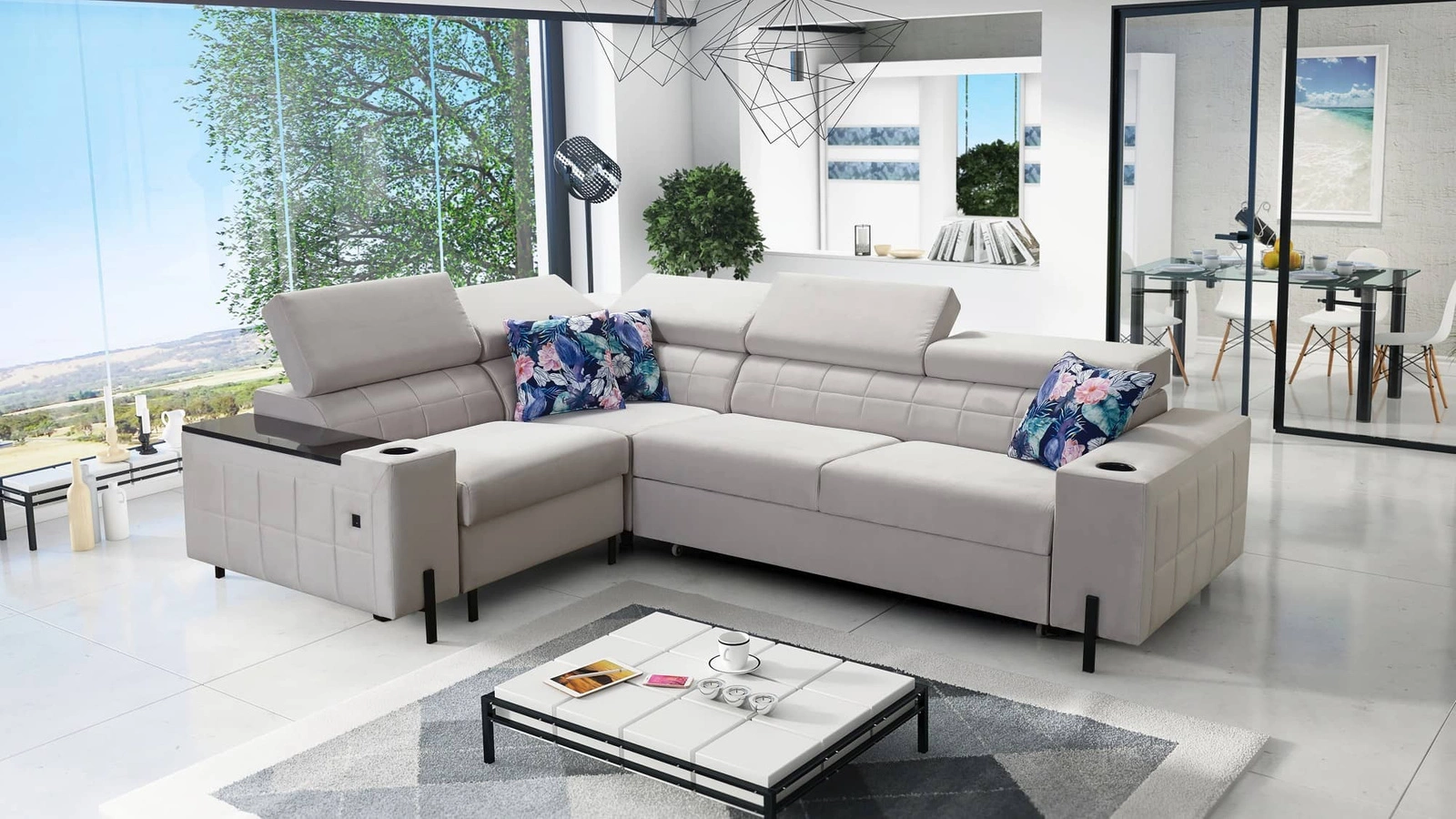 Podrobnosti o moderní rohové pohovce s funkcí spaní Belvi II