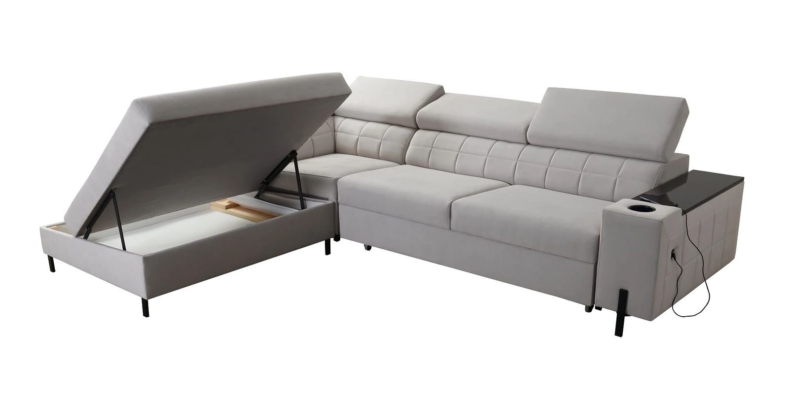 Mezi doplňky tohoto nábytku, které ocení všichni uživatelé, patří nádoba na lůžkoviny, funkce spaní, otevírací tyč, držáky na nápoje po stranách a dvě nabíjecí zásuvky USB.