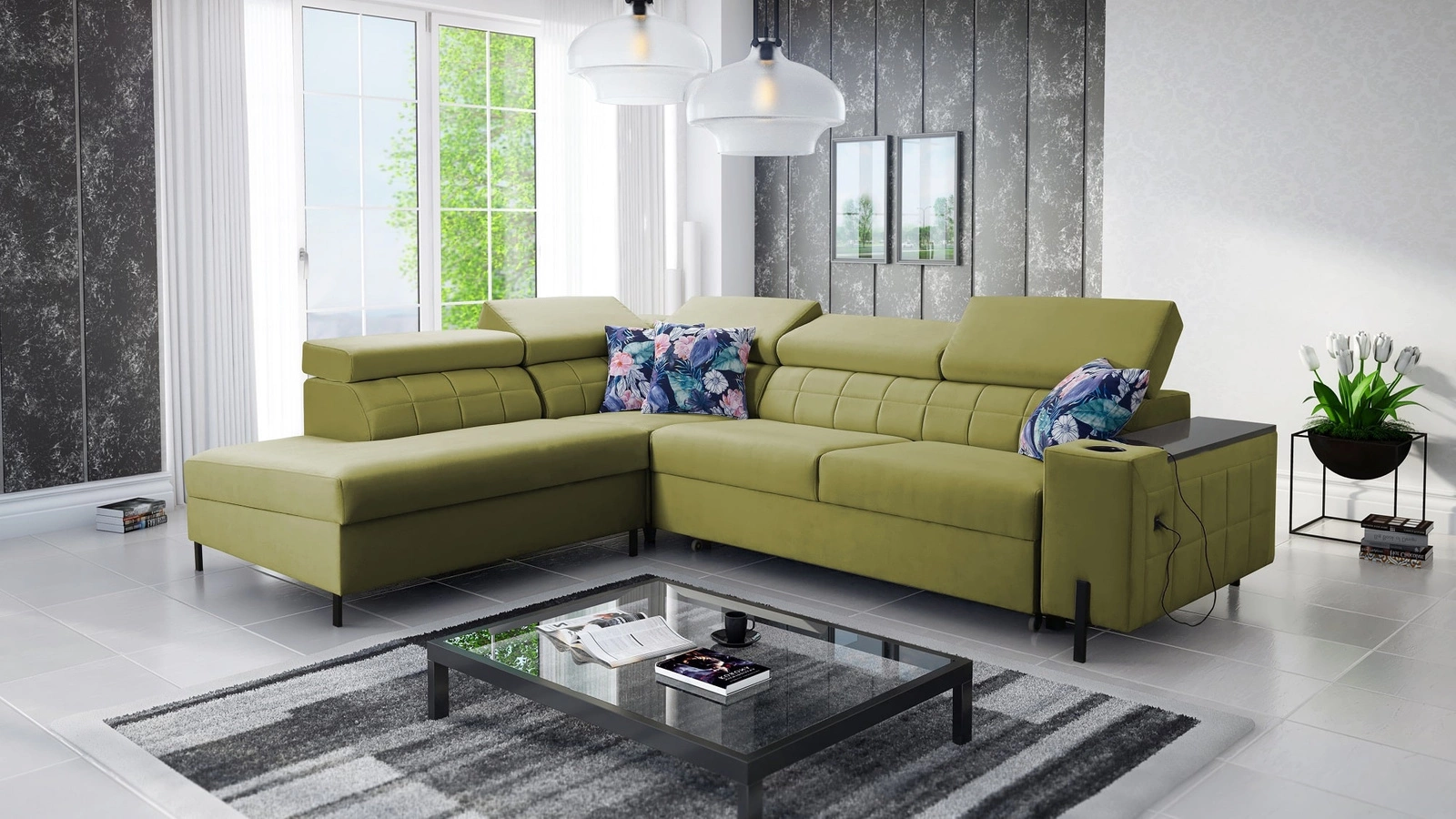 Rohová sedačka s funkcí spaní Belvi III olivová je styl, pohodlí a funkčnost v jednom