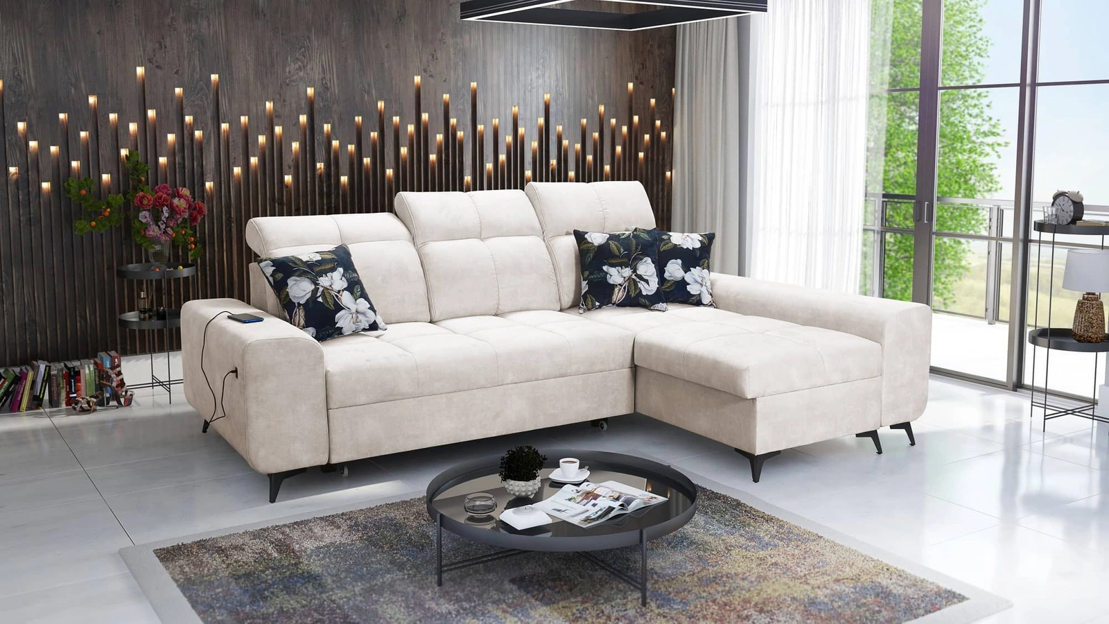 Mezi doplňky tohoto nábytku, které ocení všichni uživatelé, patří kontejner na lůžkoviny, nastavitelné opěrky hlavy a nabíjecí zásuvka USB v boční části rohové skříně.