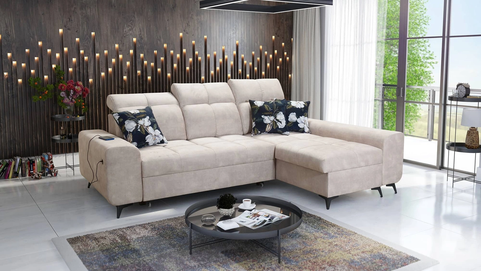 Mezi doplňky tohoto nábytku, které ocení všichni uživatelé, patří kontejner na lůžkoviny, nastavitelné opěrky hlavy a nabíjecí zásuvka USB v boční části rohové skříně.