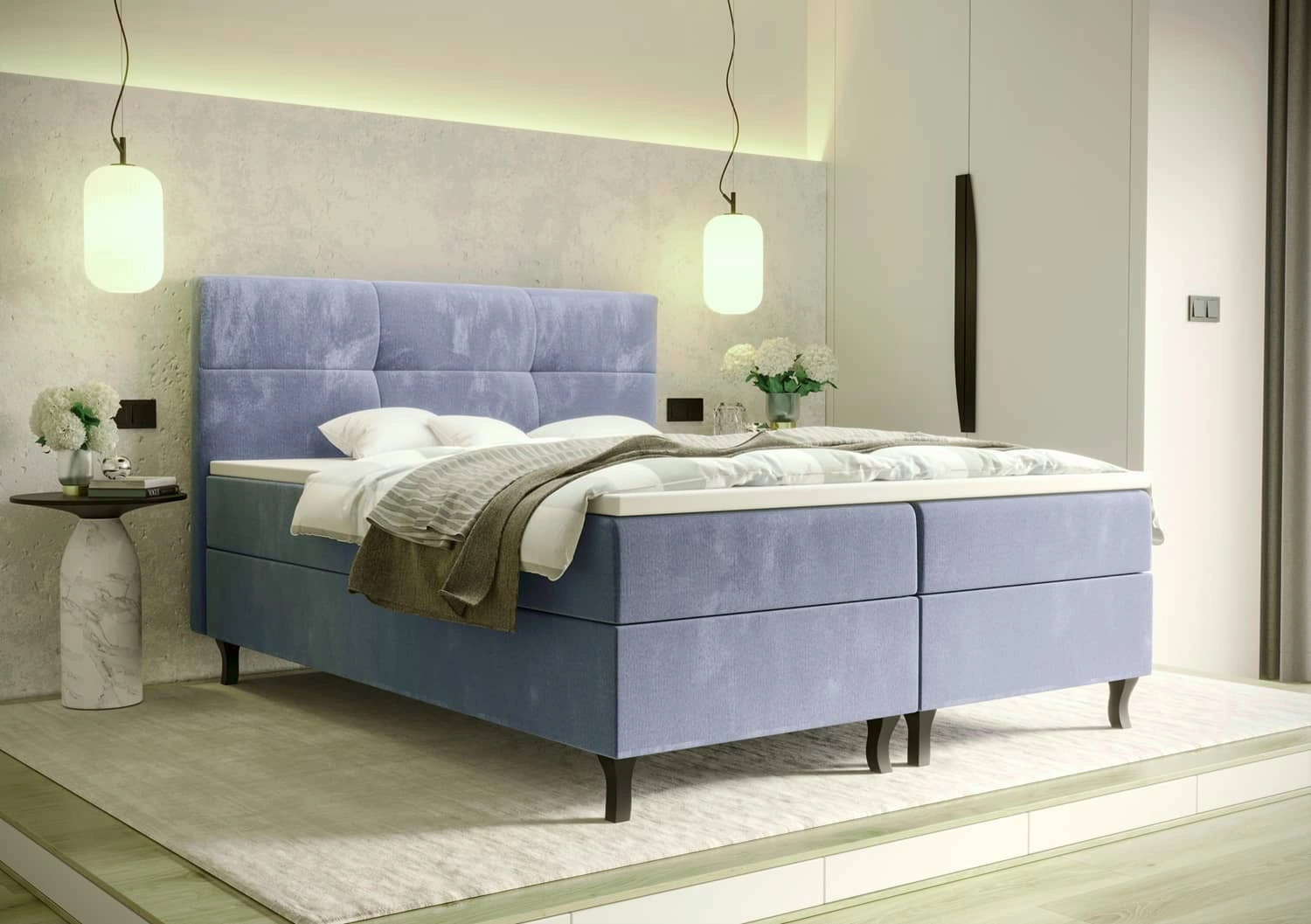 Kontinentální postel Melba 140x200 v modré barvě je ideálním řešením pro ložnice zařízené v moderním, skandinávském i klasickém stylu.