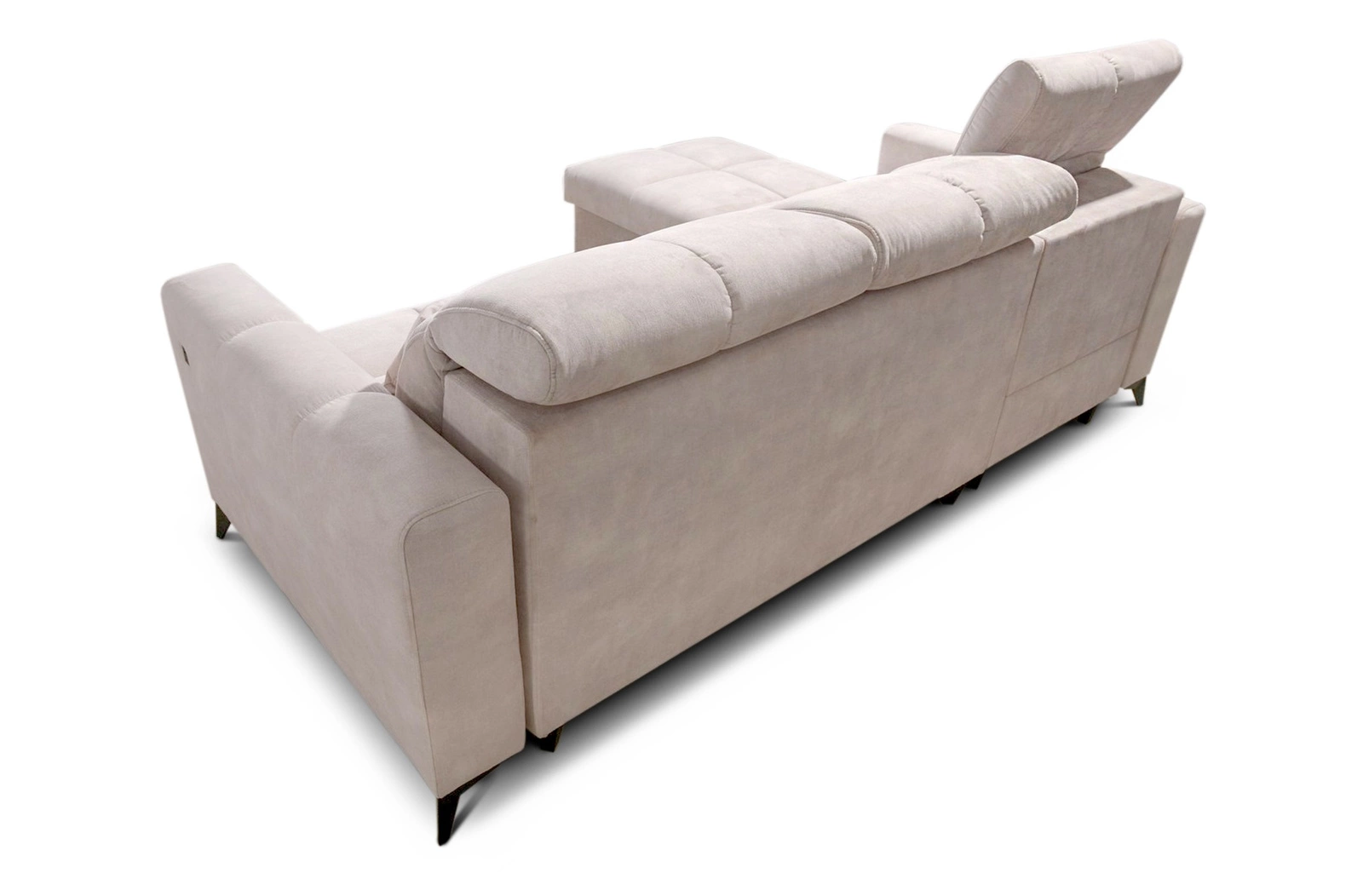 Mezi doplňky tohoto nábytku, které ocení všichni uživatelé, patří kontejner na lůžkoviny, nastavitelné opěrky hlavy a nabíjecí zásuvka USB v boční části rohové skříně.