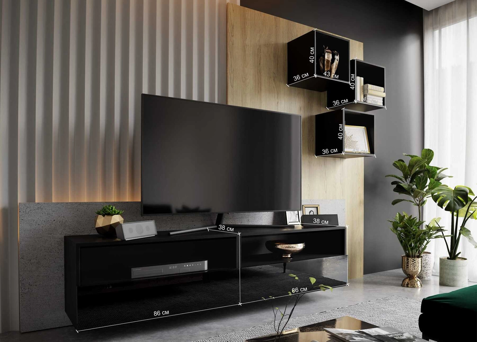 Nero bílá / bílý lesk Moderní nástěnná skříňka do obývacího pokoje Praktický systém zásuvek s otevíráním push to open