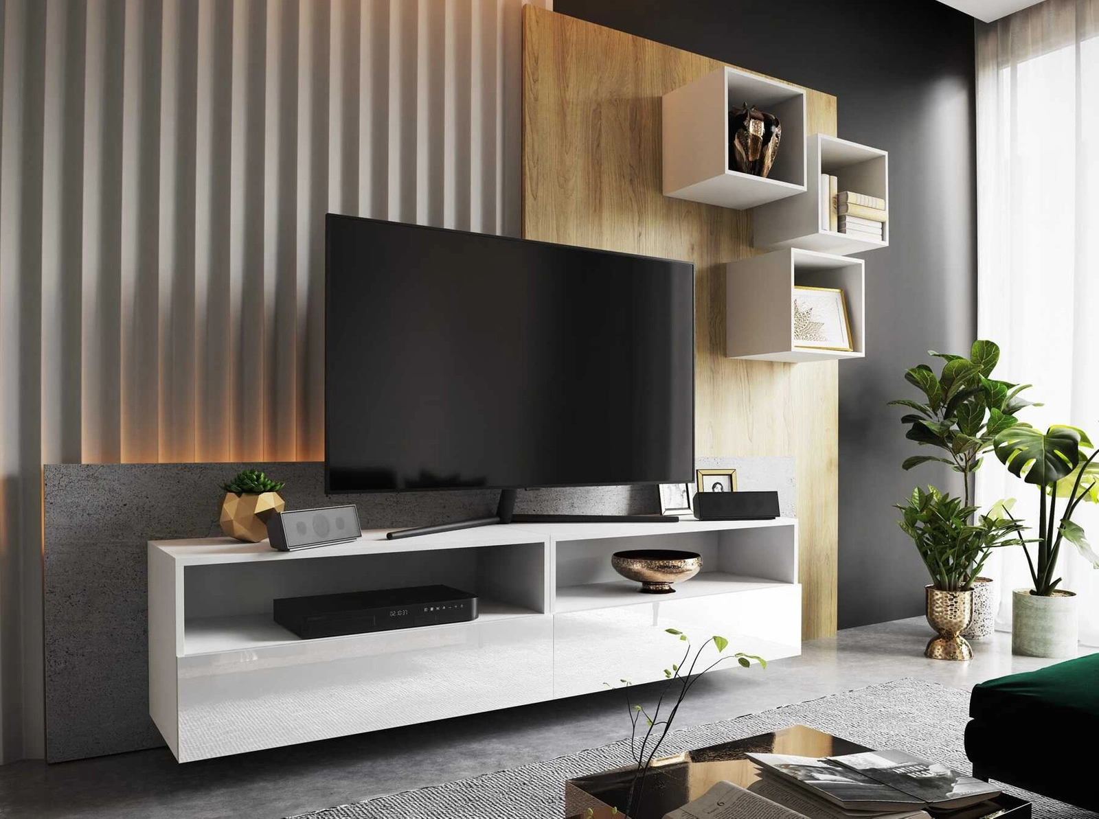 Otevřené skříně vám umožní vystavit doplňky, které zdobí váš obývací pokoj. Prostorné skříně RTV pojme veškeré příslušenství a vybavení. Další výhoda skříně RTV je možnost volby způsobu jejího umístění. Skříň RTV lze zavěsit na zeď. Díky možnosti zakoupení dalších nohou nábytek velmi rychle RTV skříň se může stát stojícím kusem nábytku.
