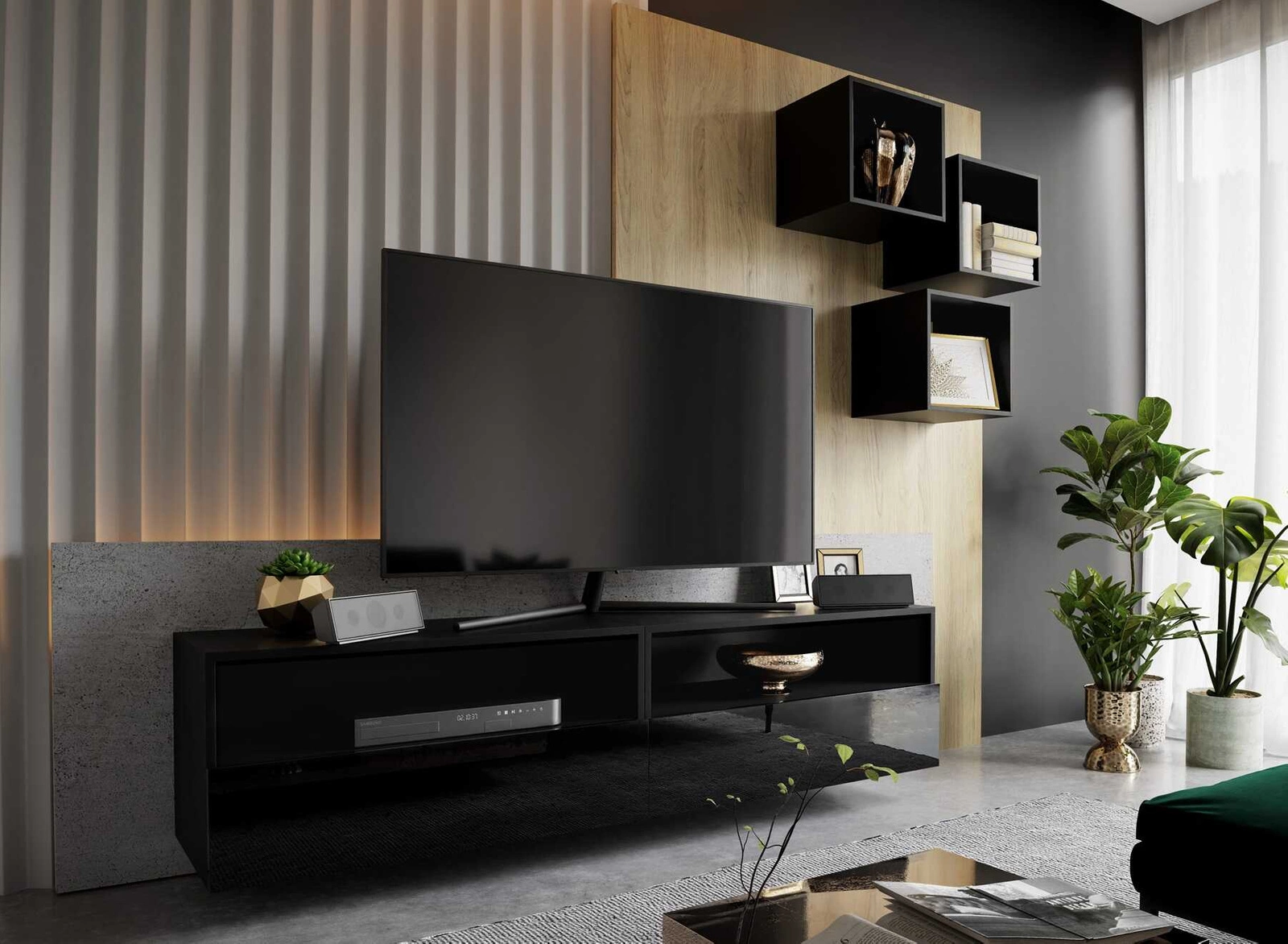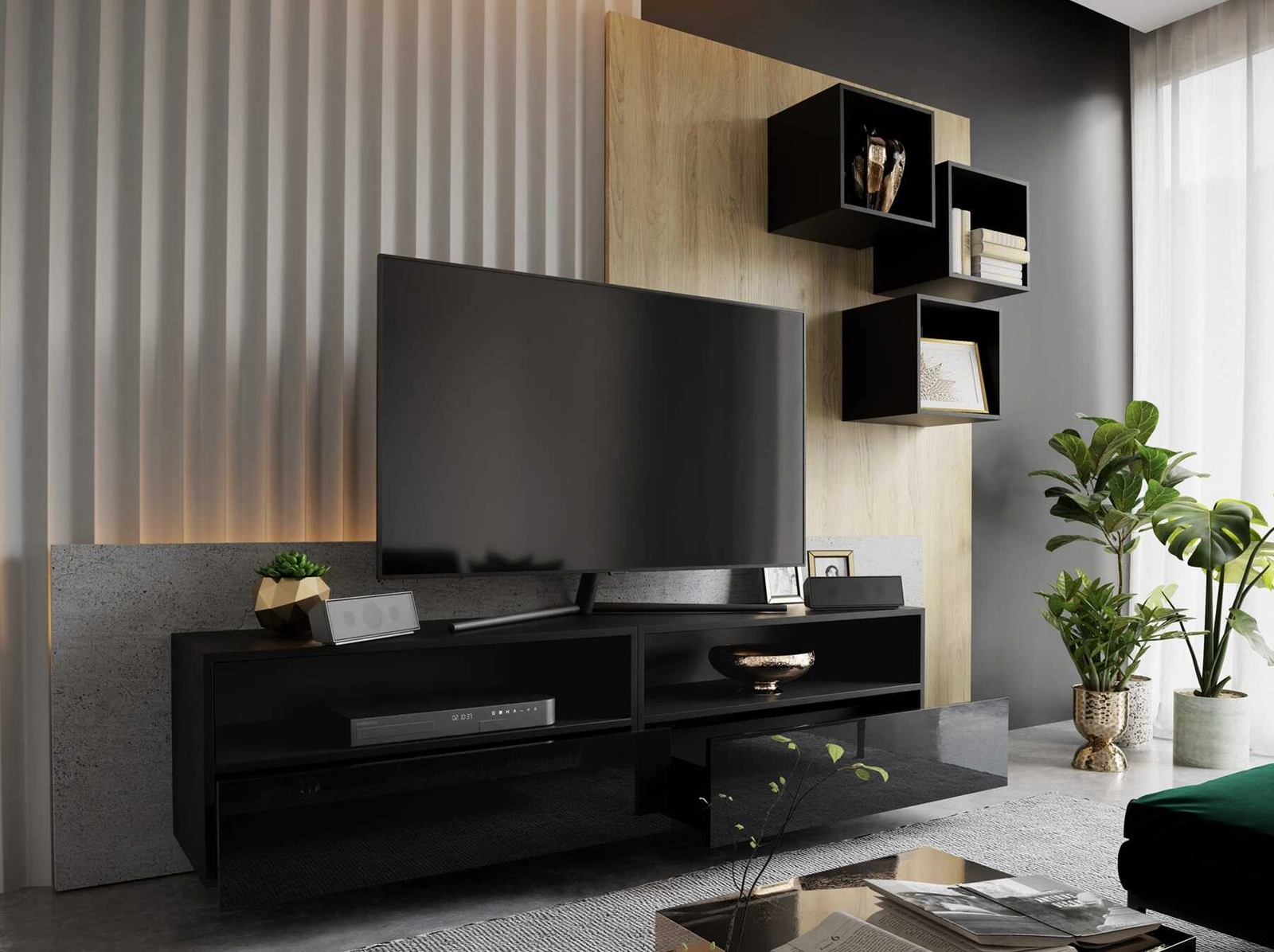 Nero černá / černý lesk Moderní nástěnná skříňka do obývacího pokoje Praktický systém zásuvek s otevíráním push to open