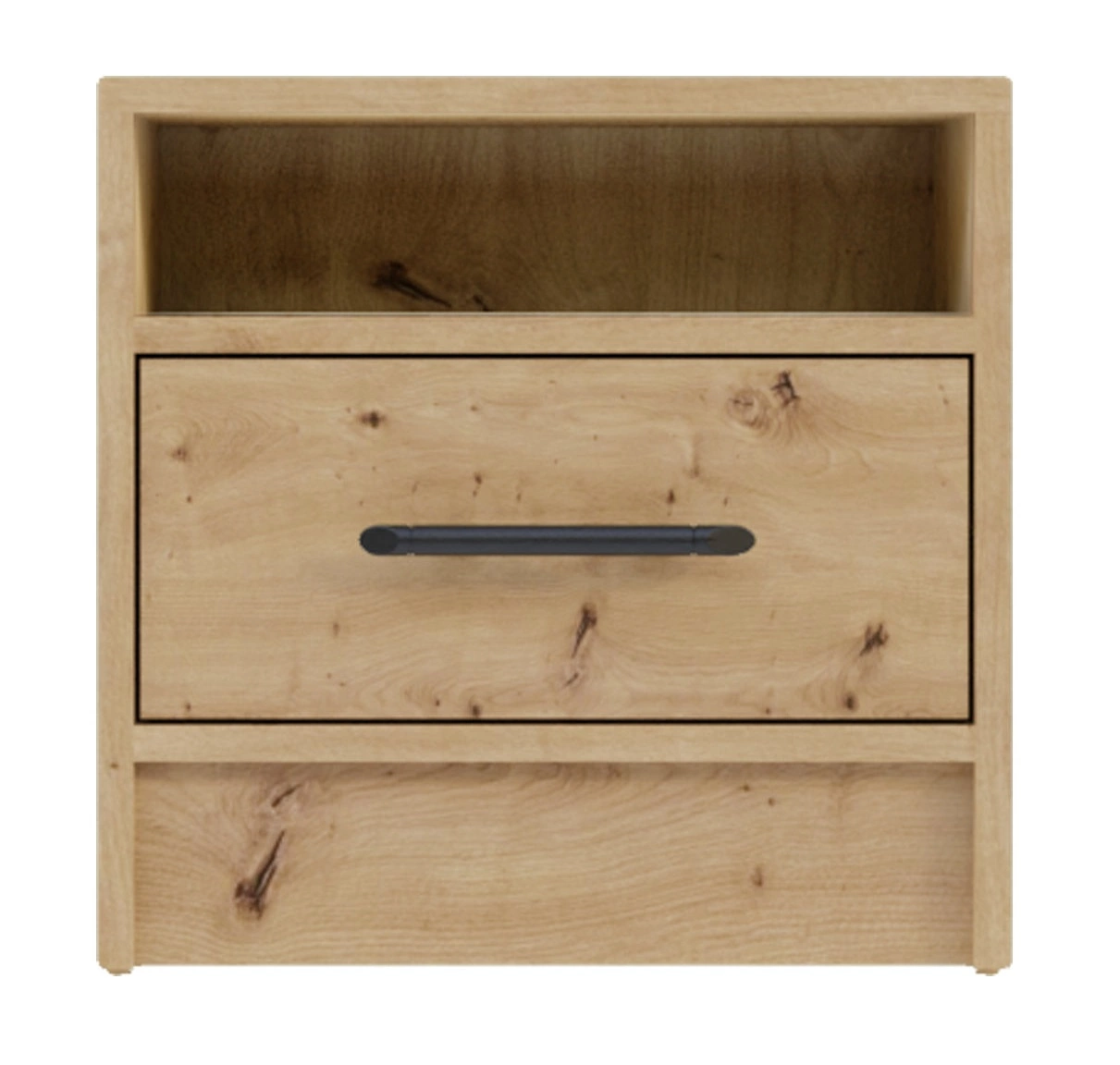 Noční skříňka je vyrobena z 1 zásuvky a otevřená část Záruka nočních stolků pohodlné a bezproblémové používání a trvanlivost celého nábytku po mnoho let používání. Dubový dekor v teplém odstínu se dobře mísí s ostatními barvami, takže se barva noční stolky do ložnice z kolekce Caspe se dobře hodí i jako noční stolek pro dítě nebo teenagera.