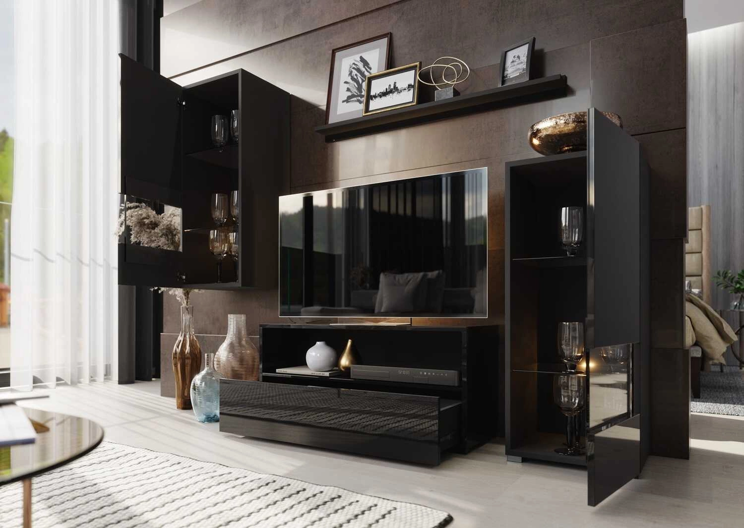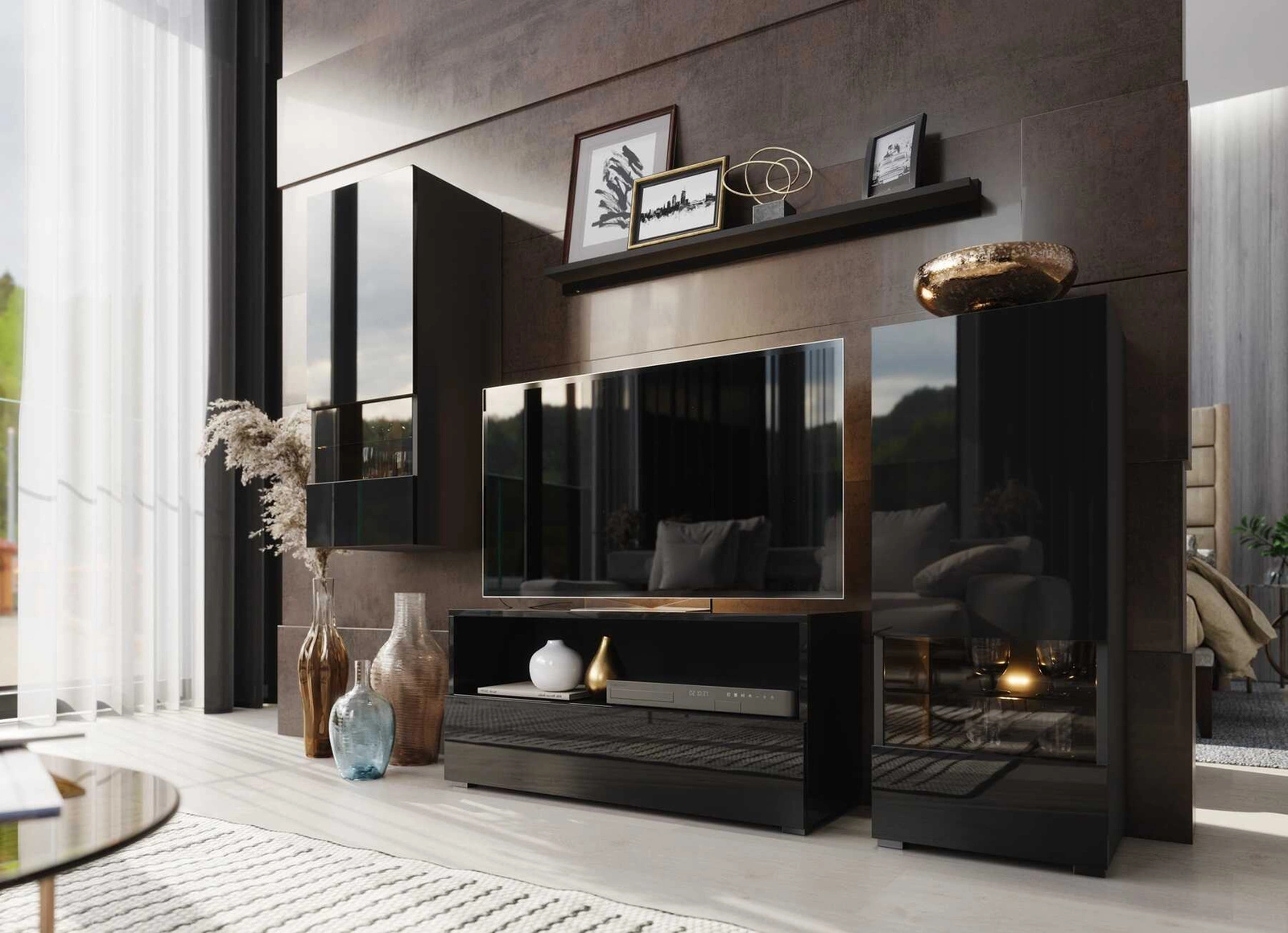 Univerzální a stylová nástěnná skříňka Olimpia černá / černý lesk do obývacího pokoje - jednoduché kousky, které se hodí do každého interiéru