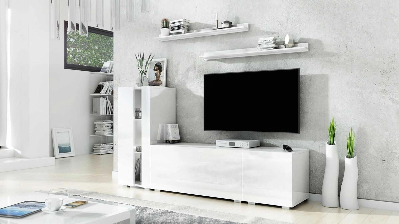 Prosklená výloha umožňuje vystavit doplňky, které zdobí váš obývací pokoj. Prostorné skříně RTV pojme veškeré příslušenství a vybavení. Další výhoda skříň RTV a vitrínu lze umístit libovolným způsobem. Díky plastovým nožičkám, které jsou součástí sady, jsou pevné prvky lze použít jako stojící nábytek. RTV skříň a vitrína lze také zavěsit na stěnu.
