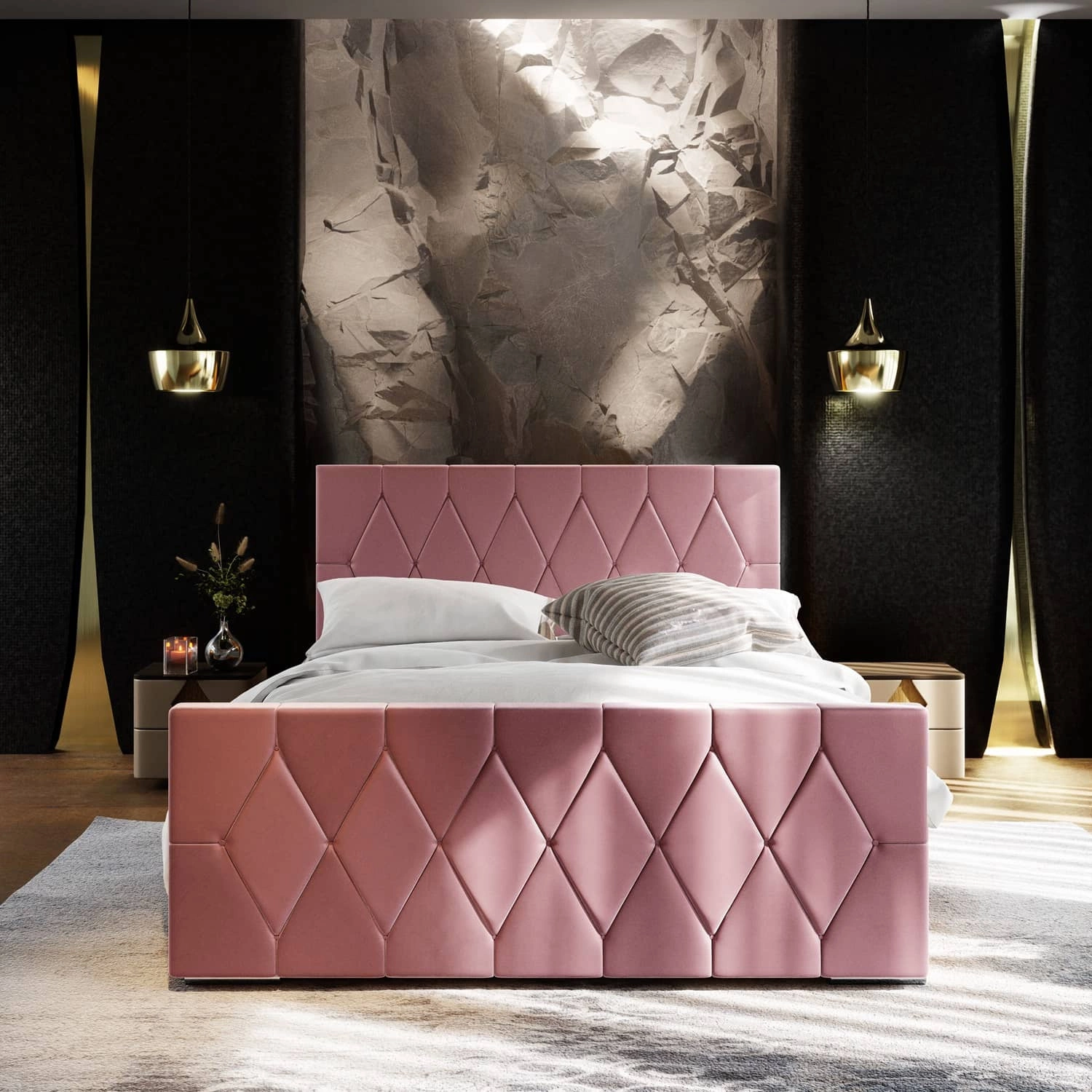 Čalouněná postel Sparks 180x200 v pudrově růžové barvě je stylový kus nábytku, který se skvěle hodí do každé ložnice.