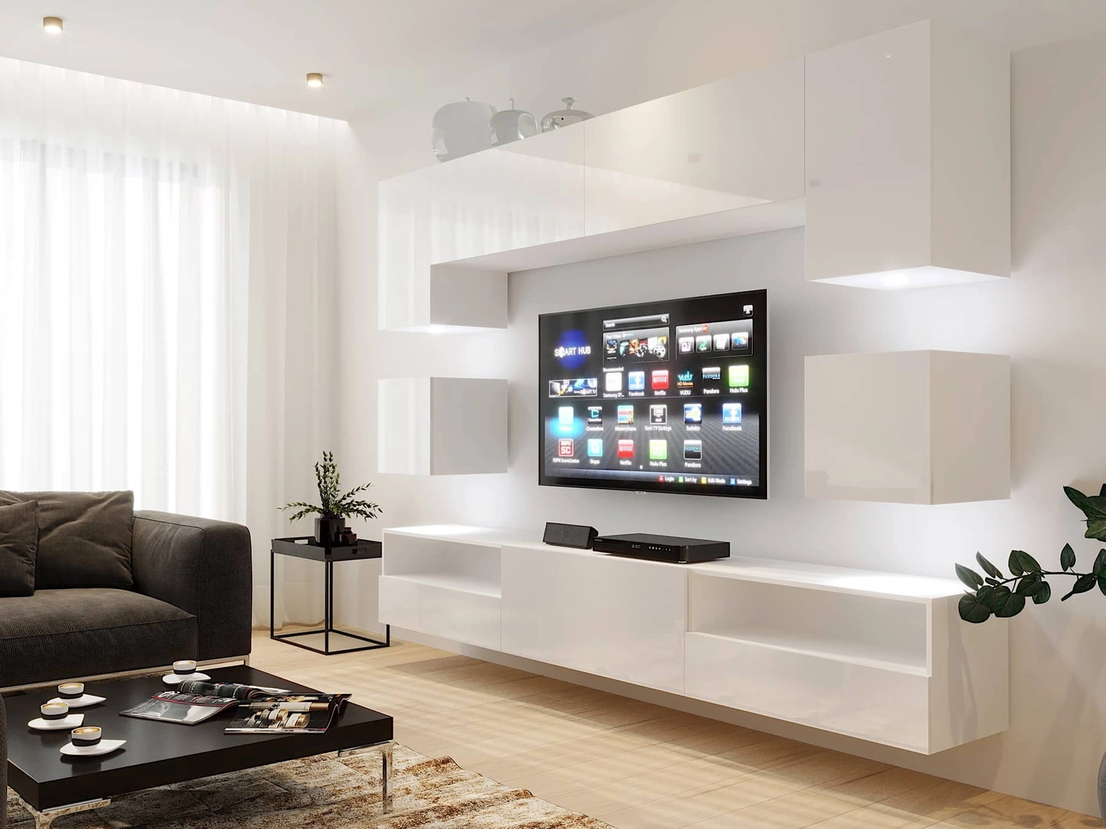 Siana bílá / bílý lesk extrémně stylová obývací stěna vizuálně atraktivní a funkční