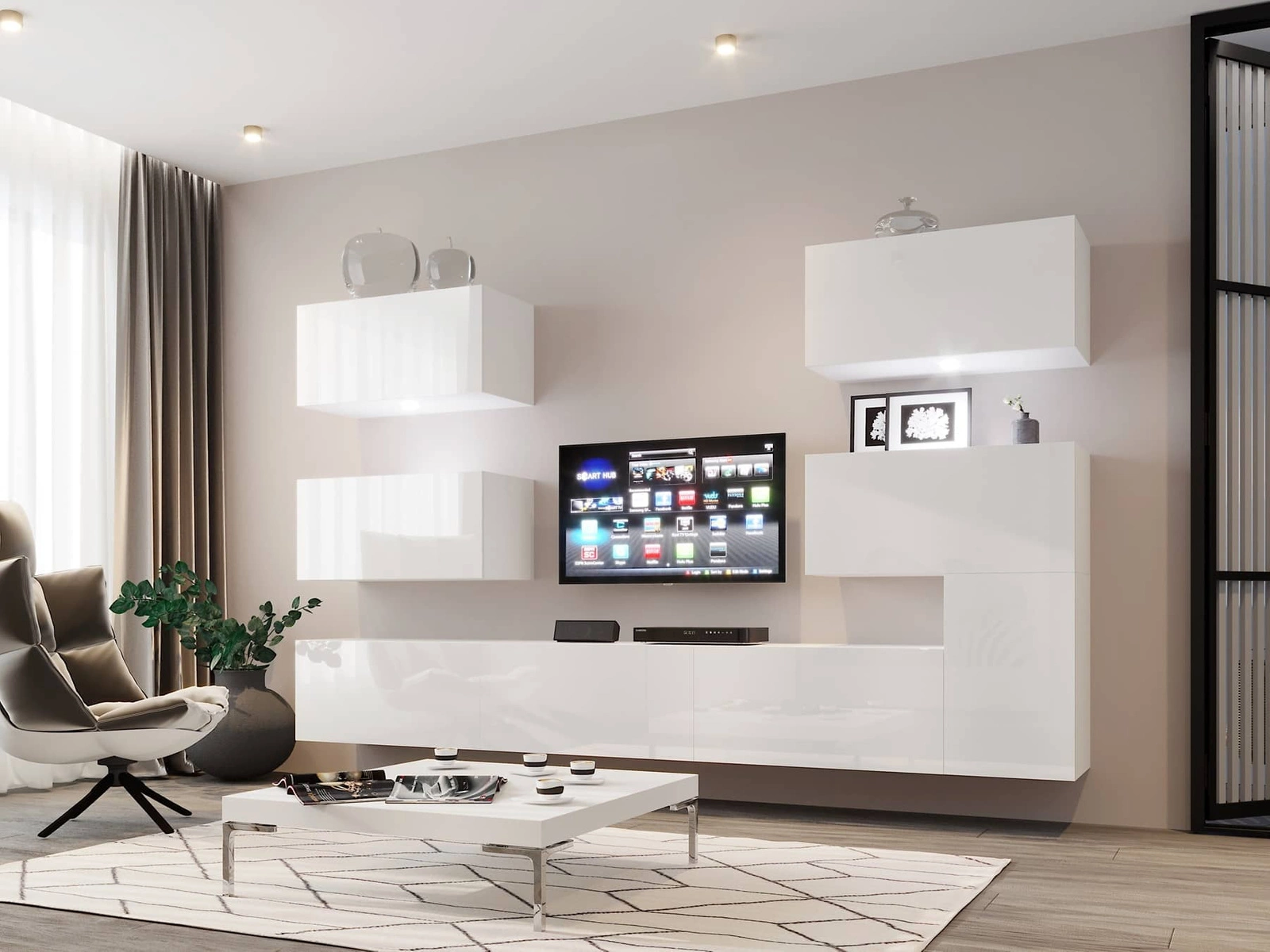 Nástěnná skříňka Sidari bílá / bílý lesk Mimořádně stylová nástěnná skříňka do obývacího pokoje Vizuálně atraktivní a funkční