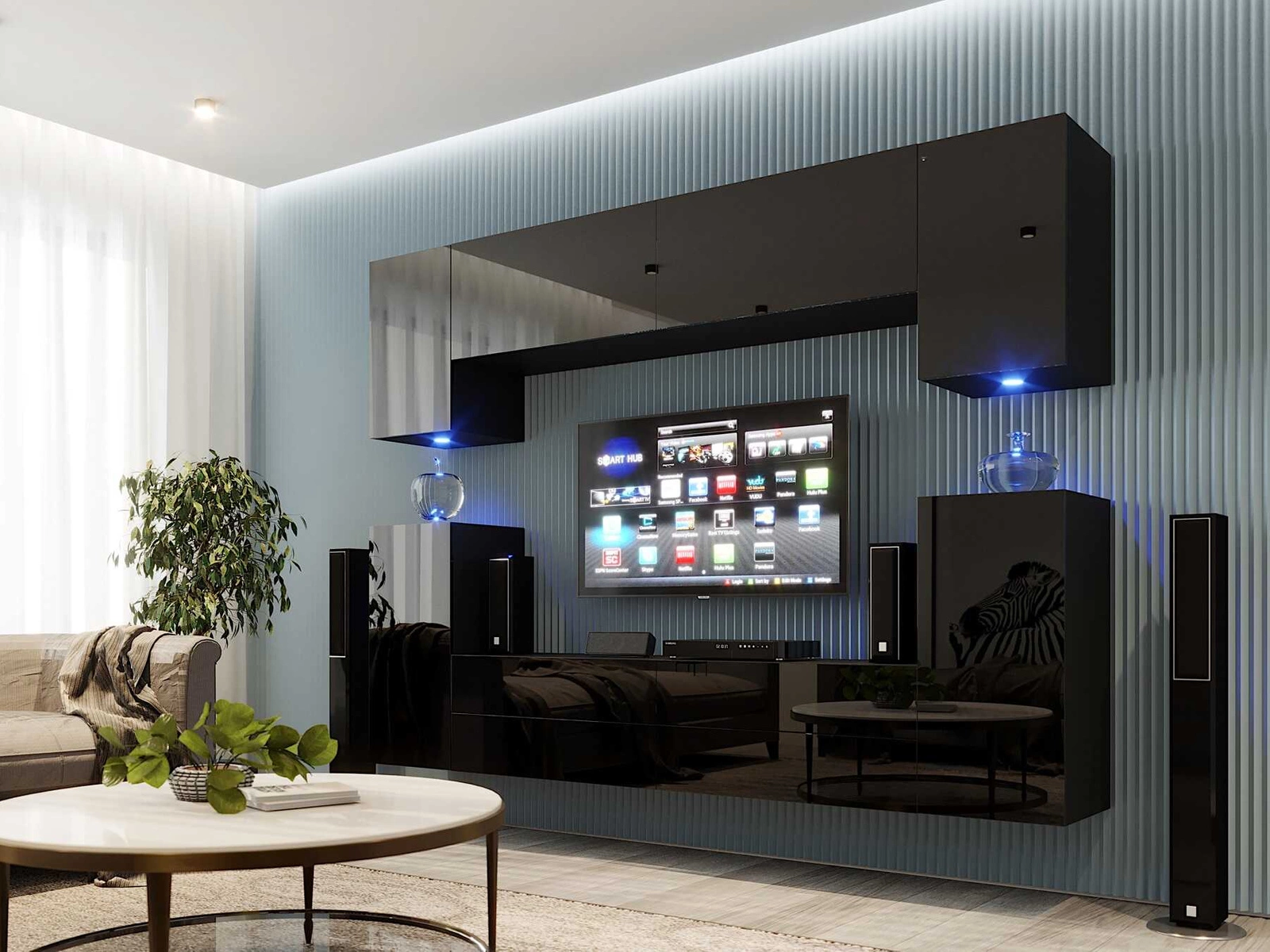 Dveře vertikálních skříněk nástěnné jednotky jsou univerzální a lze je namontovat po vpravo nebo po vlevo webové stránky. Horizontální dveře skříněk jsou uzamykatelné praktické klapky. K otevírání dvířek a zásuvek nábytku se používaly následující nástroje bezúchytkový systém push-to-open. Nadčasová černá pevné látky se dobře kombinuje s ostatními barvami, což z nábytku Trizin dělá skvělý dokázat lze použít jako nástěnnou skříňku do obývacího pokoje nebo jako nástěnnou skříňku do obývacího pokoje. Djak může nákup dalších nohou nábytek, nástěnná skříňka se může stát stojícím kusem nábytku.