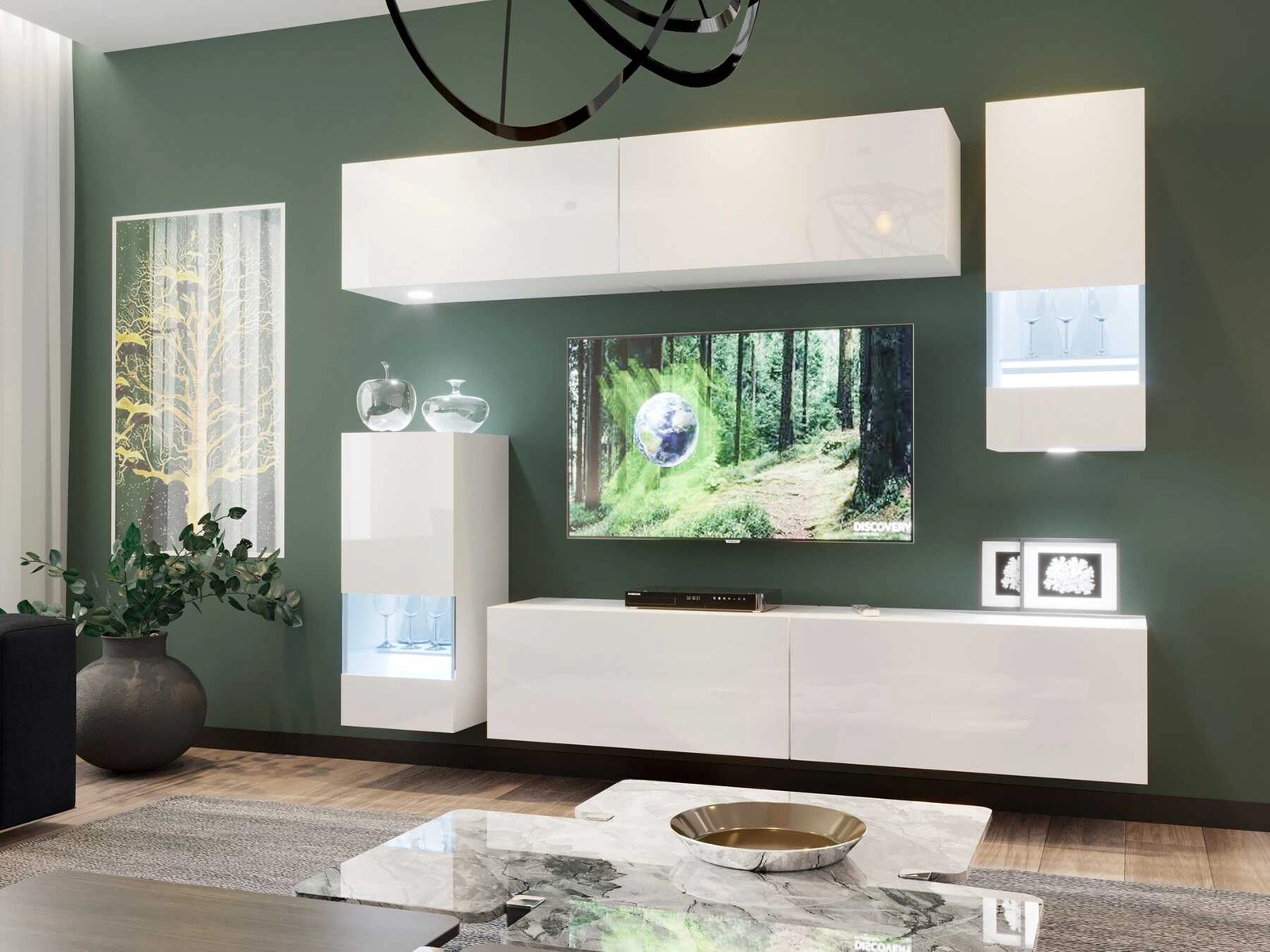 Matala bílá / bílá lesklá nástěnná skříňka módní a stylová geometricky tvarovaná nástěnná skříňka jednoduché tvary masivů