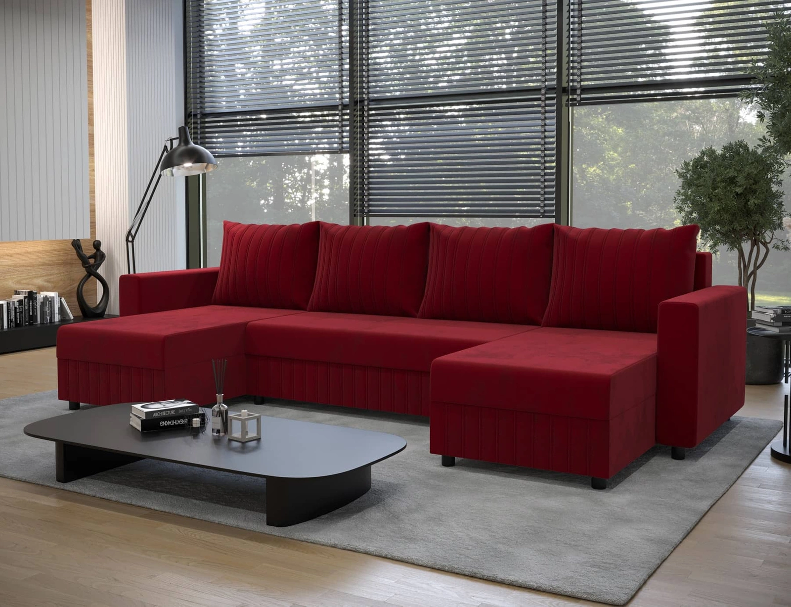 Rohová pohovka Pasco U ve vínové barvě je minimalistický masiv, který se bude dobře hodit k jakémukoli uspořádání ve vaší domácnosti.