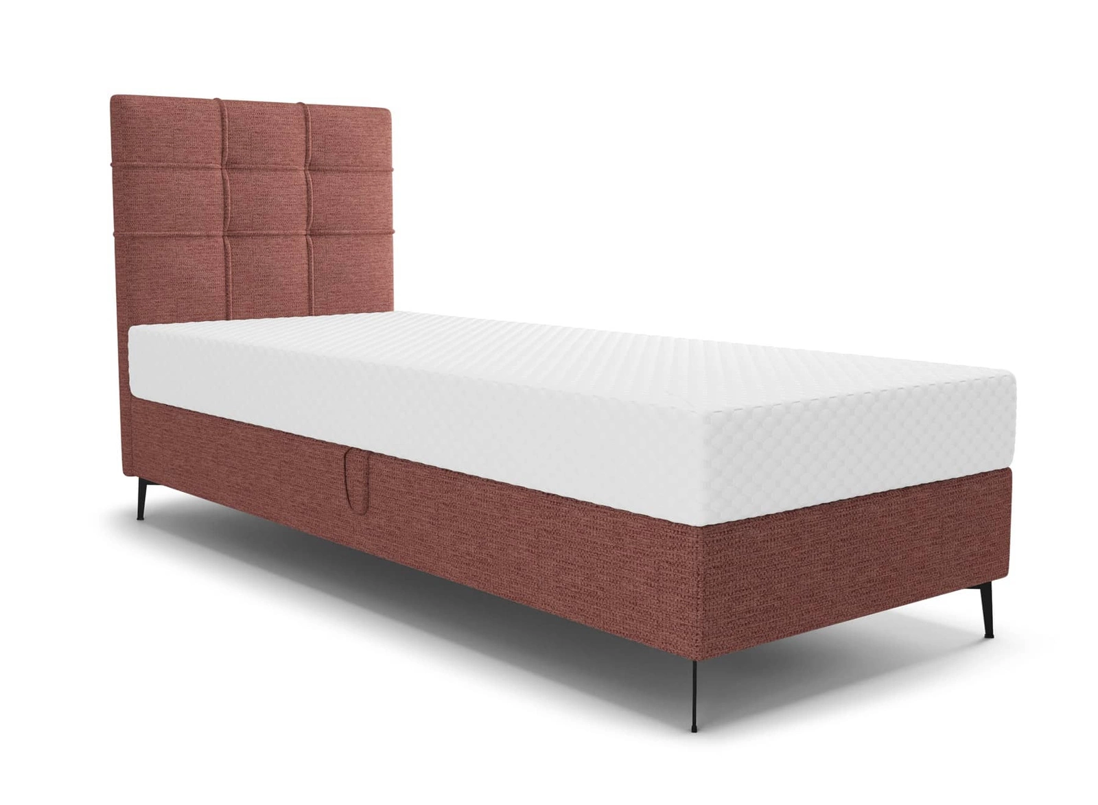 Kontinentální postel Irvine 90x200 v cihlově červené barvě je ideální volbou do každé ložnice nebo pokoje pro mládež.