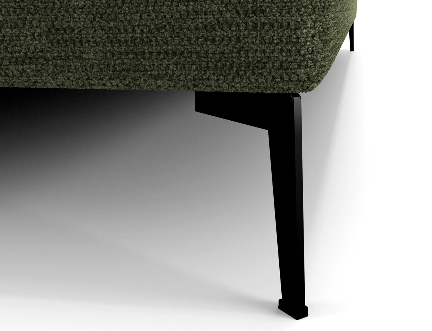 • Kontinentální postel Irvine je ideální volbou do menší ložnice nebo pokoje pro mladé. Vysoká opěrka hlavy se stylovou povrchovou úpravou zdobí interiér. Celé uspořádání doplňují černé kovové nohy a potahová látka se zajímavou strukturou.