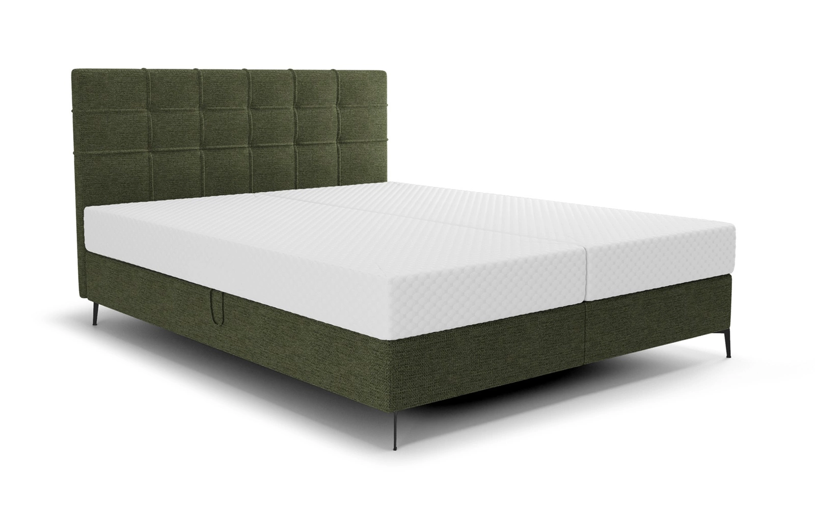 Kontinentální postel Irvine 140x200 zelená Stylová postel s úložným prostorem na lůžkoviny a vysokým čelem zaujme svým elegantním designem