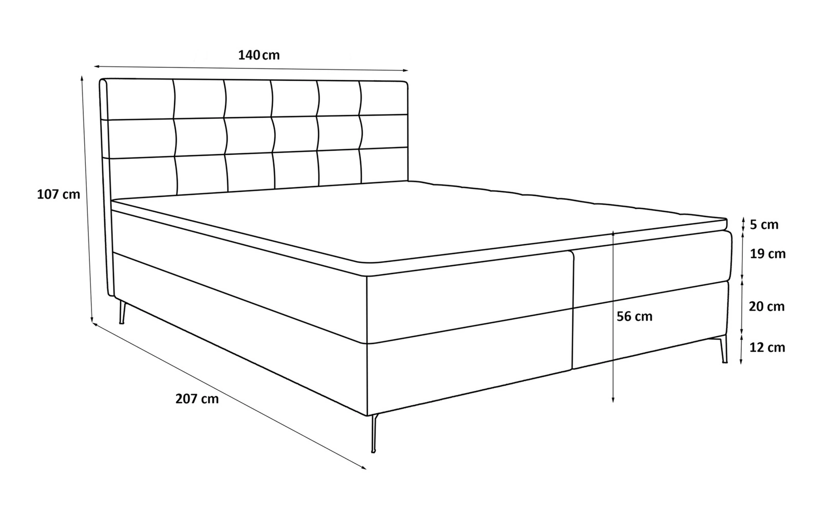 Mezi standardní vlastnosti čalouněné postele Irvine patří matrace bonell. Matrace bonell se vyznačuje pružností povrchu, takže je vhodná pro osoby v širokém rozmezí hmotnosti. Matrace je pokryta 5 cm topper, která navíc chrání její povrch před znečištěním a zároveň zvyšuje pohodlí na lůžku.