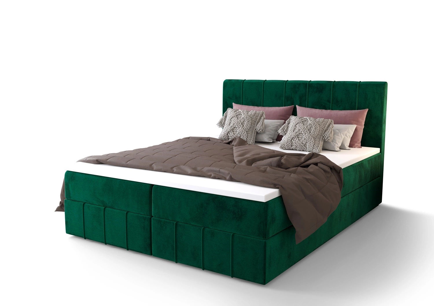 Kontinentální postel Casey 140x200 lahvově zelená v moderním skandinávském stylu s výrazným čelem