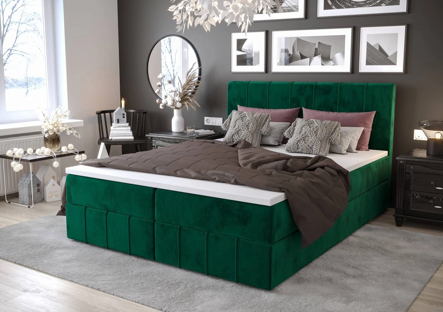 Kontinentální postel Casey 140x200 v lahvově zelené barvě je ideálním řešením pro ložnice zařízené v moderním, skandinávském i klasickém stylu.
