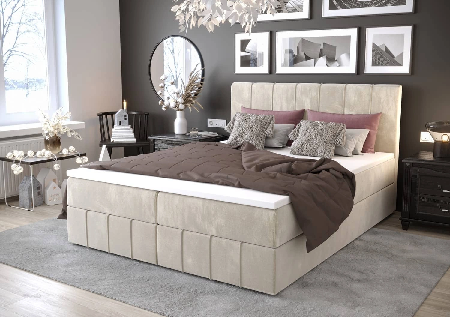 Kontinentální postel Casey 180x200 v béžové barvě je ideálním řešením pro ložnice zařízené v moderním, skandinávském i klasickém stylu.