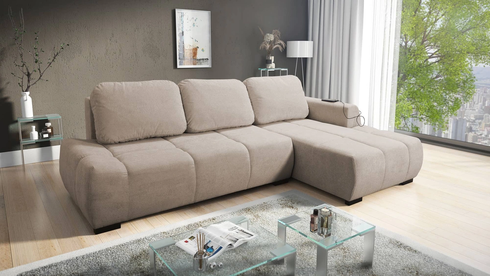 Podrobnosti o moderní rohové pohovce Gentle s funkcí spaní