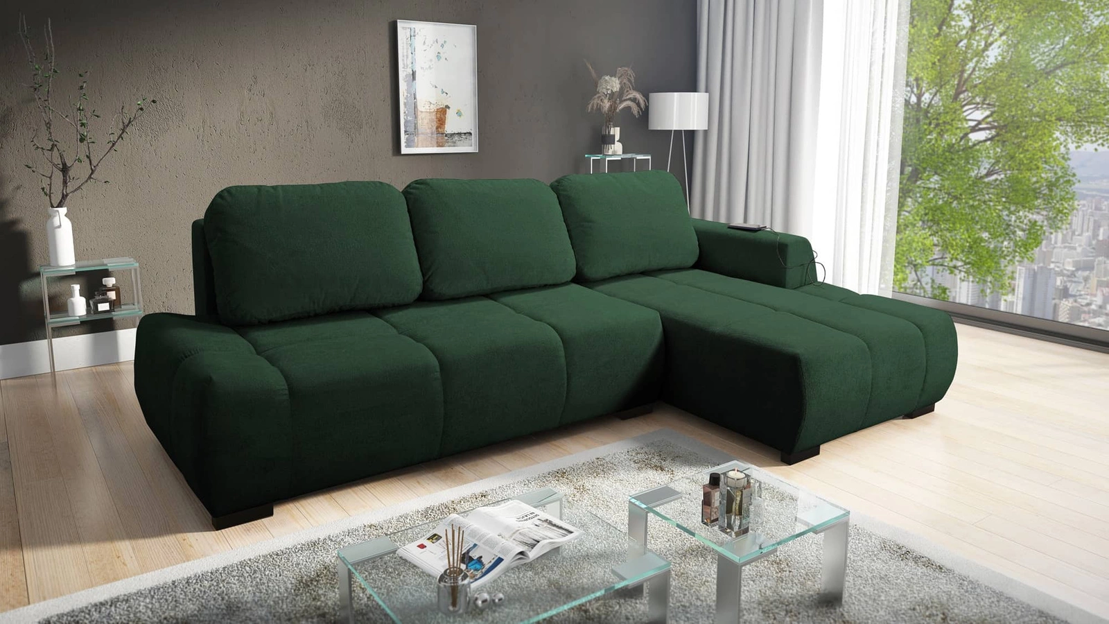 Rohová pohovka s funkcí spaní Gentle zelená pravá strana Stylový design rohové rozkládací pohovky charakteristické svým zaobleným tvarem