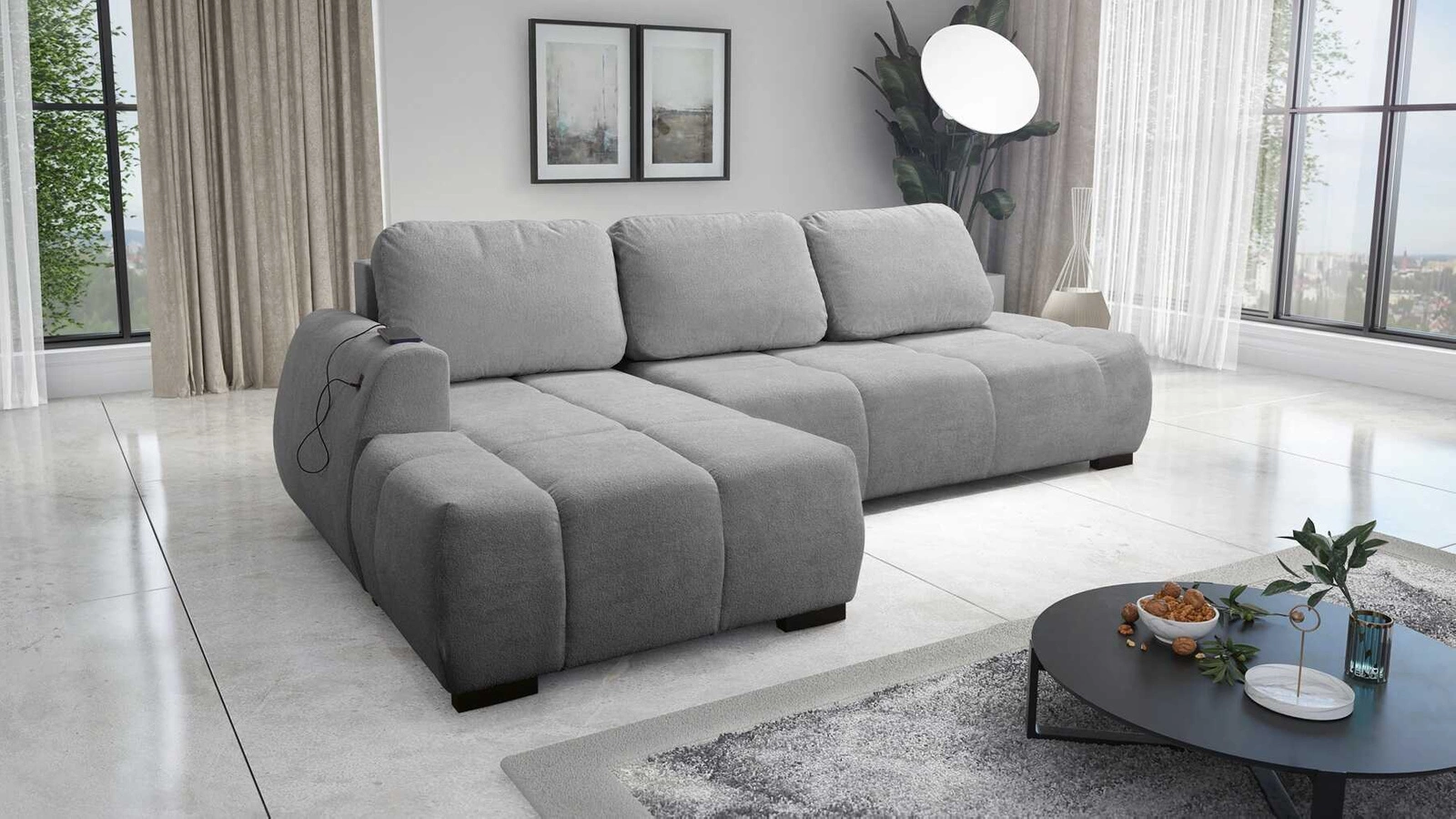 Doplňky tohoto nábytku, které ocení všichni uživatelé, jsou kontejner na lůžkoviny a nabíjecí zásuvka USB na boku rohové skříně.