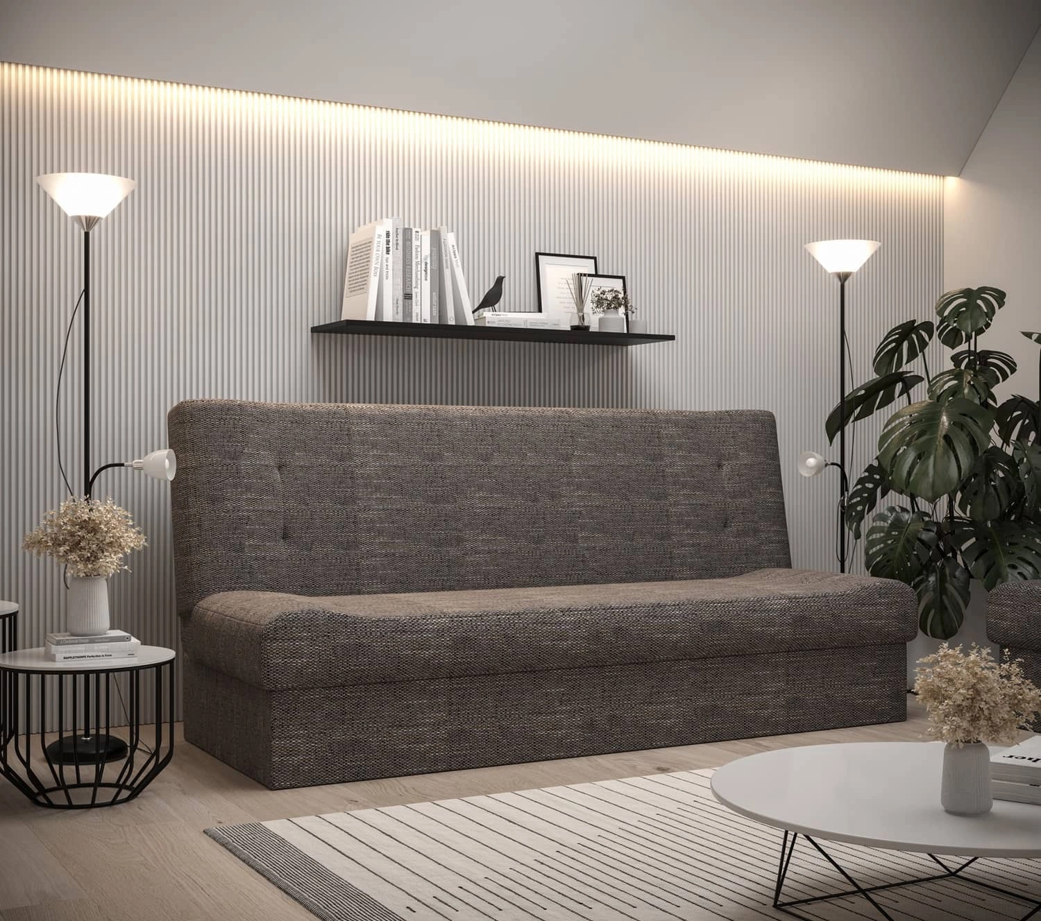 Rozkládání pohovky je velmi snadné a nevyžaduje velkou sílu. To vše díky mechanismu click-clack, který se vyznačuje jednoduchou konstrukcí a dlouhou životností. Polyuretanová pěna T30 jsou materiály sedáku pohovky. Plocha pohovky na spaní je 112x192 cm. Pro ty, kteří chtějí zvýšit pohodlí svého spánku, doporučujeme topperovou matraci. Dodatečné polstrování vyrovná všechny nerovnosti pohovky vzniklé při konstrukci nábytku. Zadní strana pohovky je čalouněna náhradní látkou, která zajišťuje dostatečnou ochranu nábytku.