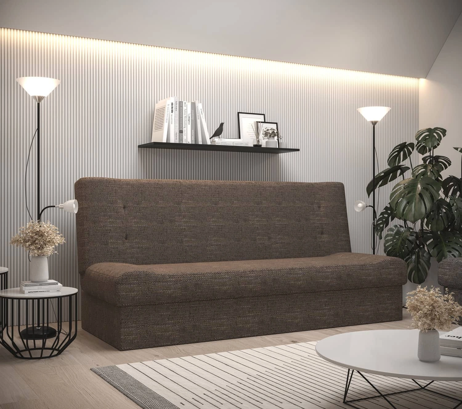 Tato funkční pohovka se hodí do jakéhokoli typu místnosti! Zaručuje pohodlné a bezproblémové používání a trvanlivost celého nábytku po mnoho let používání. Ideální jako pohovka do obývacího pokoje, pohovka s funkcí spaní a do jakéhokoli interiéru zařízeného ve vašem oblíbeném stylu!