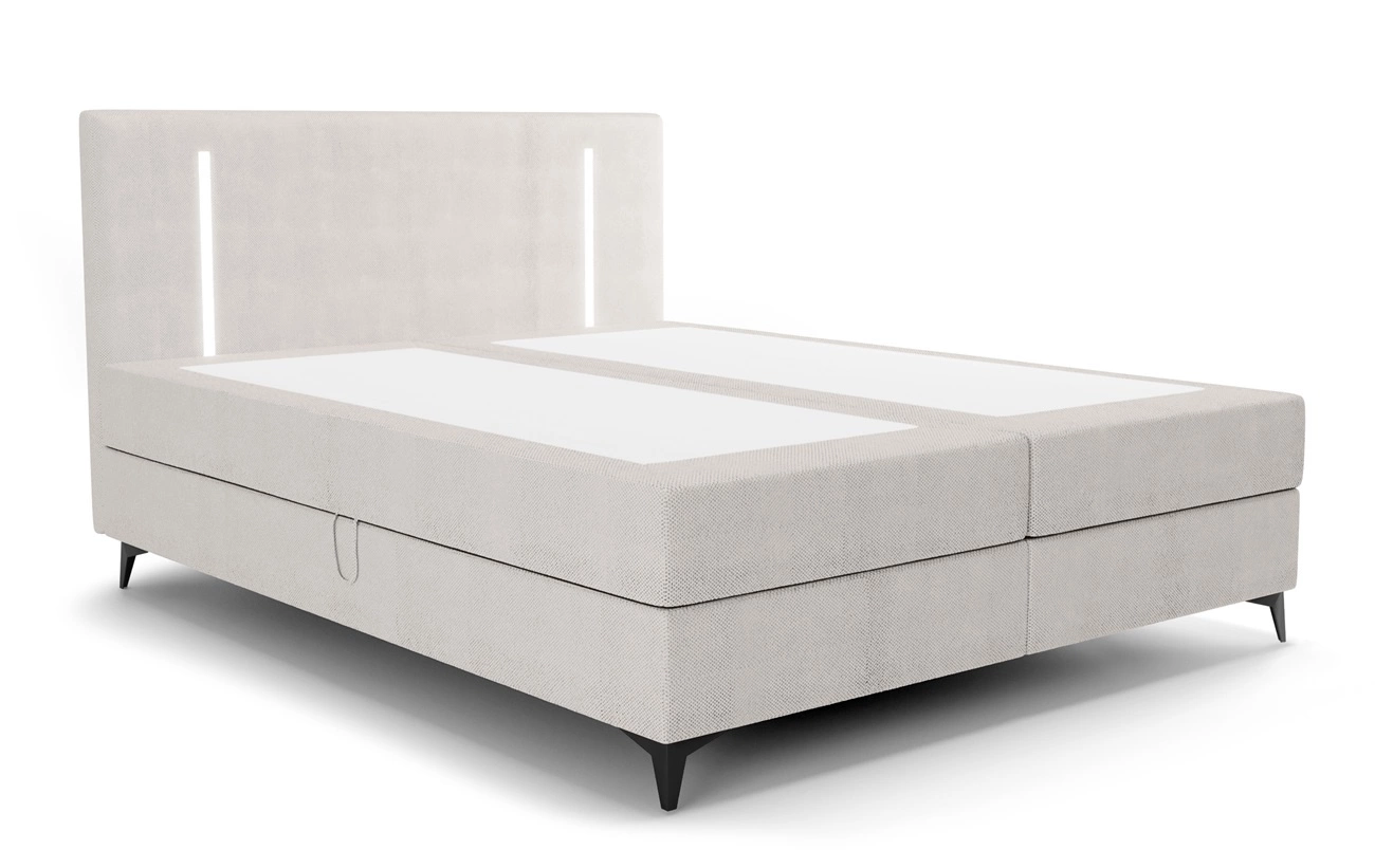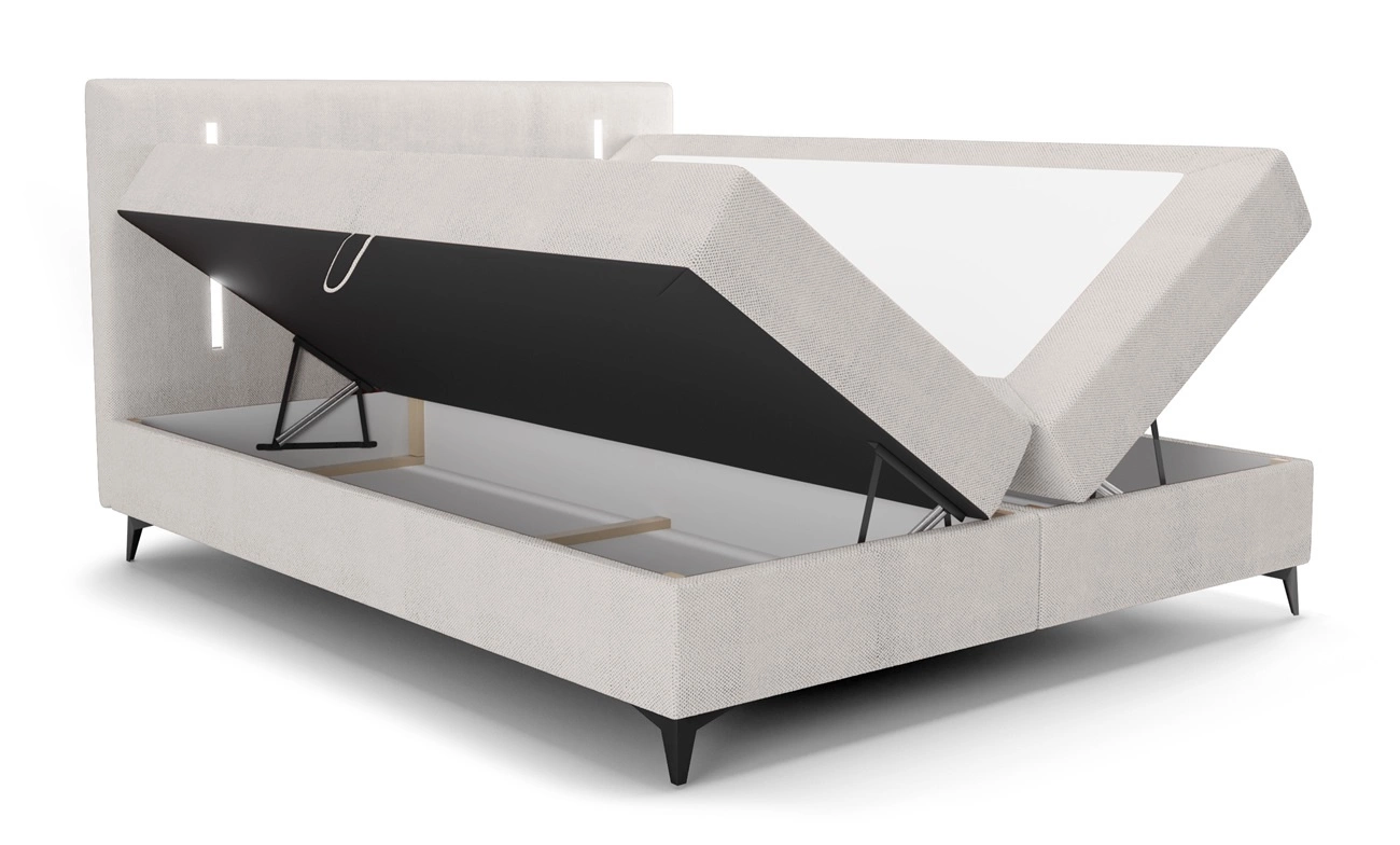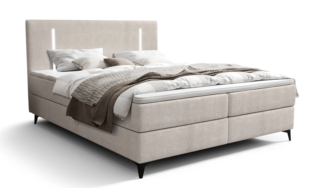 Kontinentální postel Norco 140x200 ecru Stylová postel s osvětlením kontejneru na ložní prádlo v čele postele dodává jedinečný nádech