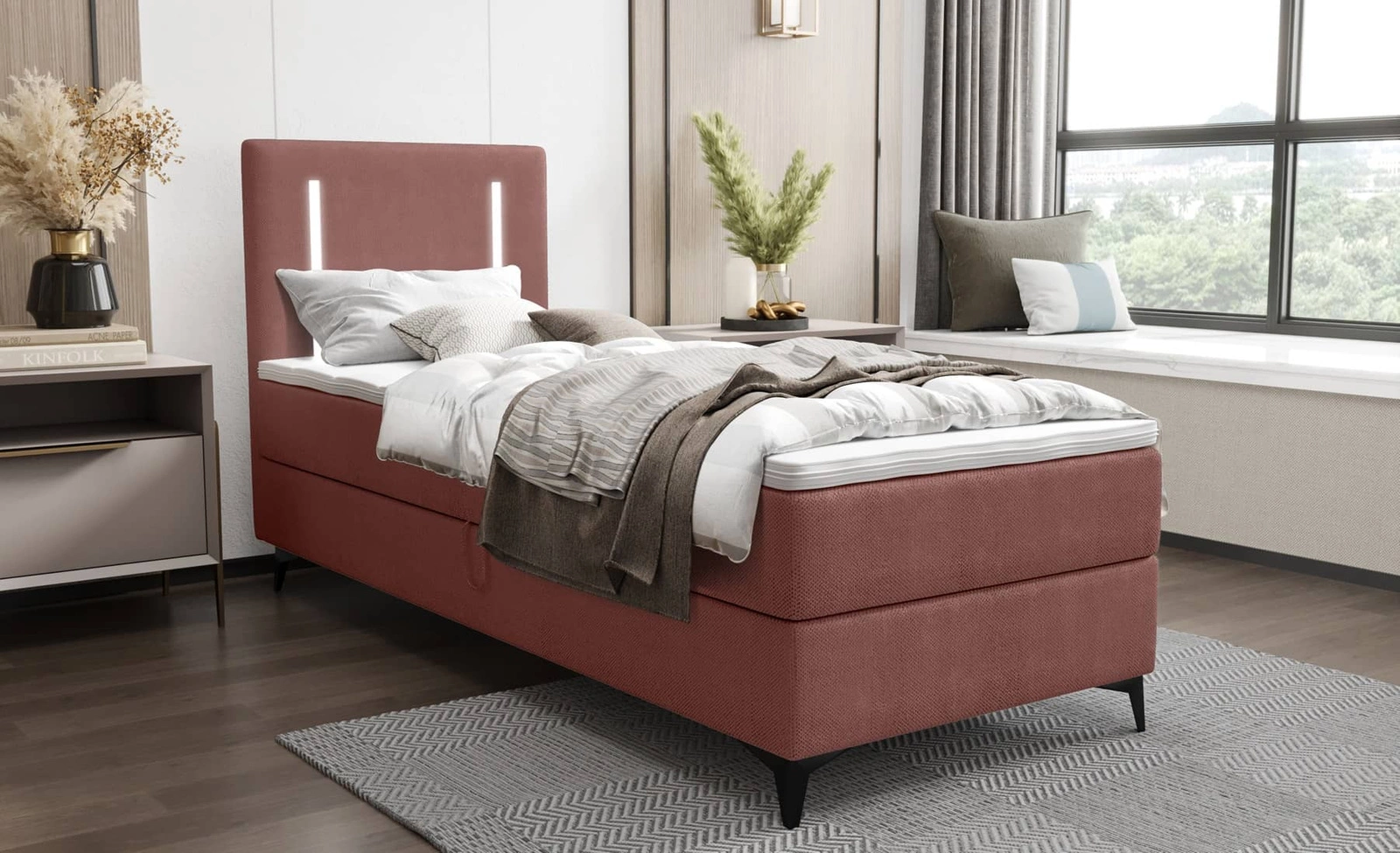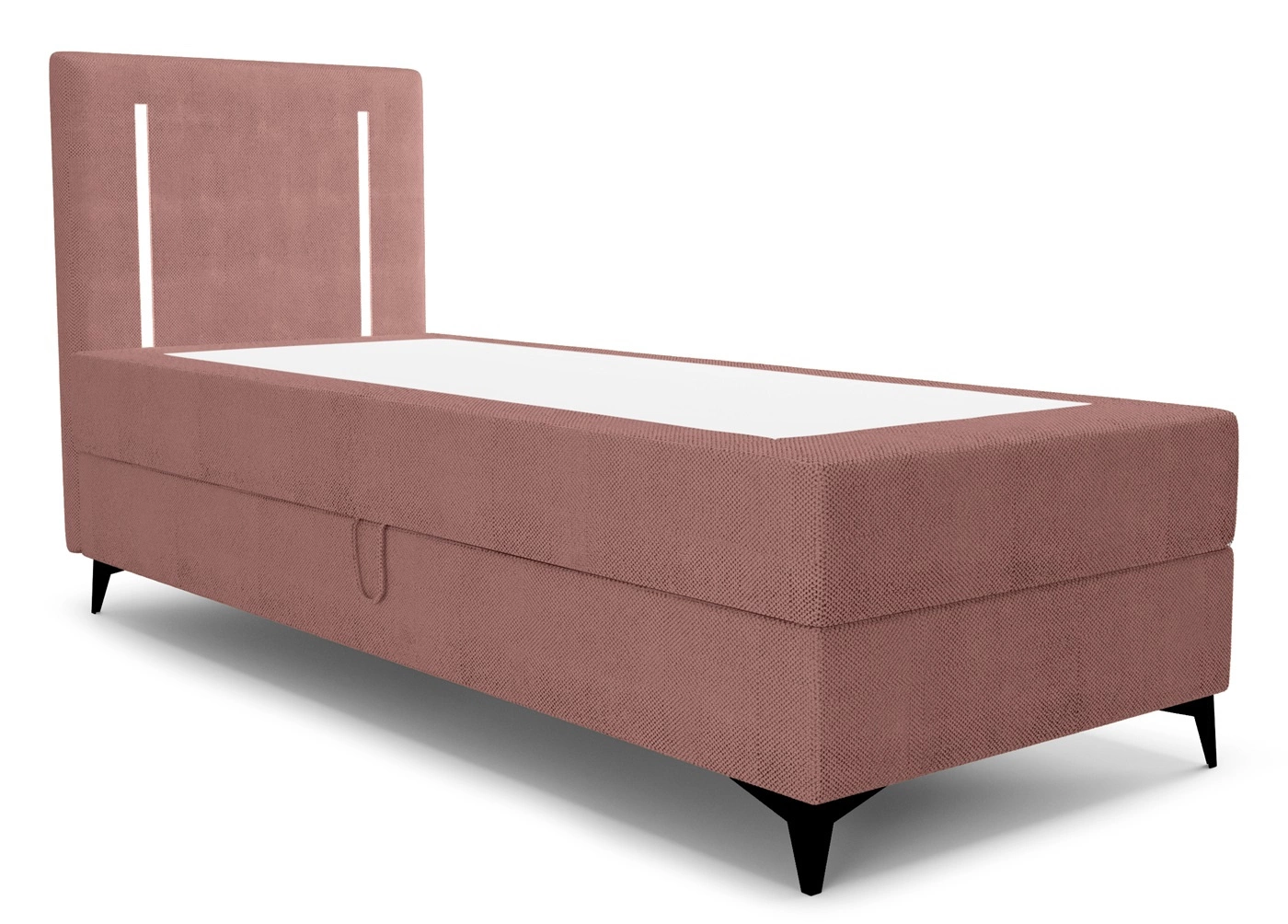 Kontinentální postel Norco 90x200 růžová Stylová postel s úložným prostorem na lůžkoviny Osvětlení v čele postele dodává jedinečný nádech
