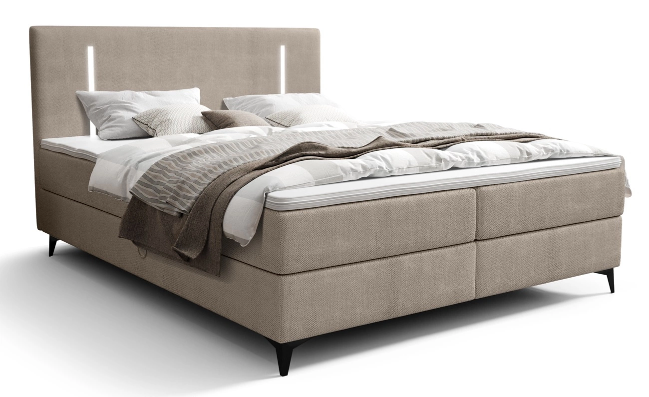 Kontinentální postel Norco 140x200 tmavě béžová Stylová postel s úložným boxem Osvětlení v čele postele dodává jedinečný nádech
