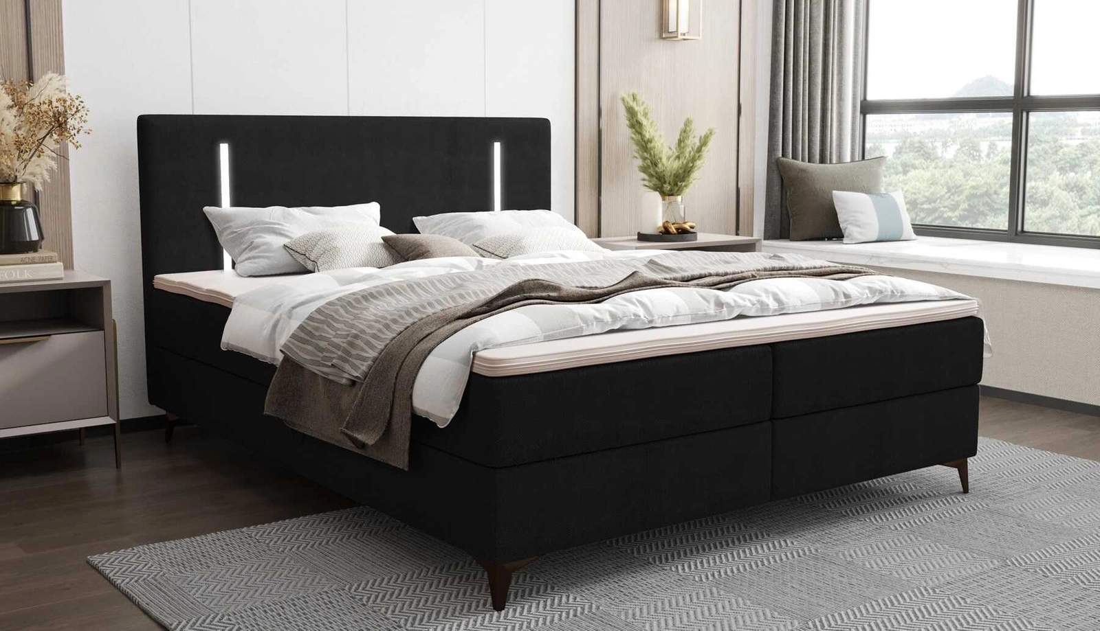 Kontinentální postel Norco 160x200 černá stylová postel s úložným boxem osvětlení v čele postele dodává jedinečný nádech