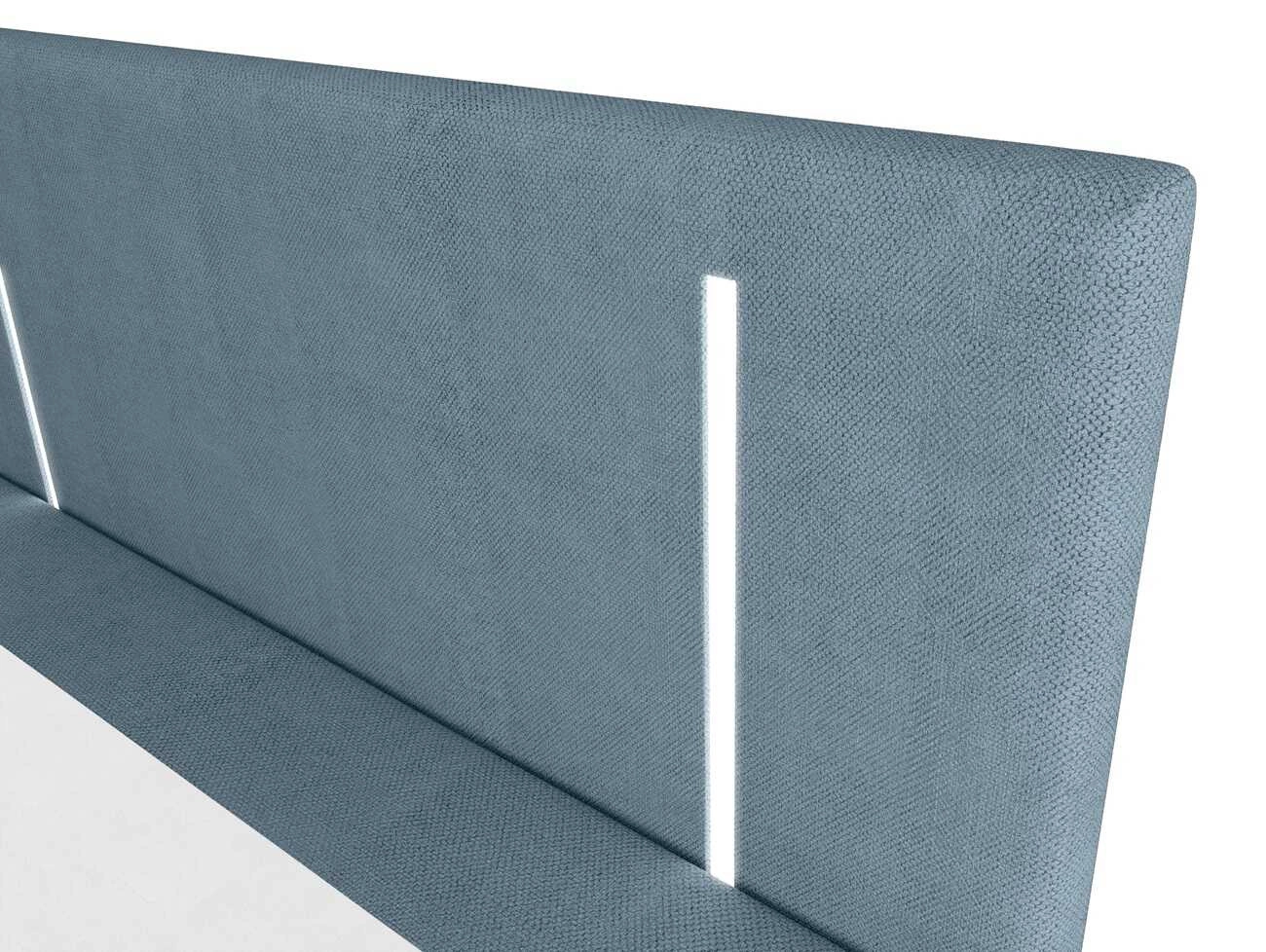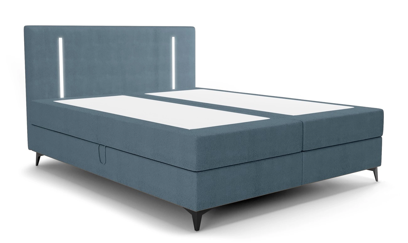 Kontinentální postel Norco 180x200 modrá stylová postel s úložným boxem osvětlení v čele postele dodává jedinečný nádech