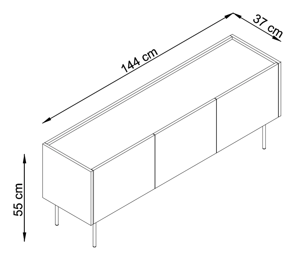 Televizní skříňka je vyrobena z vysoce kvalitní laminovaná deska o tloušťce 16 mm, který je odolný vůči vnějším vlivům, jako jsou otlaky, nárazy a nešťastné škrábance. Konstrukce nábytku byla posílena o kovovými nohami výška 20 cm, které zdůrazňují eleganci skříně TV a zároveň zachovávají její praktičnost.