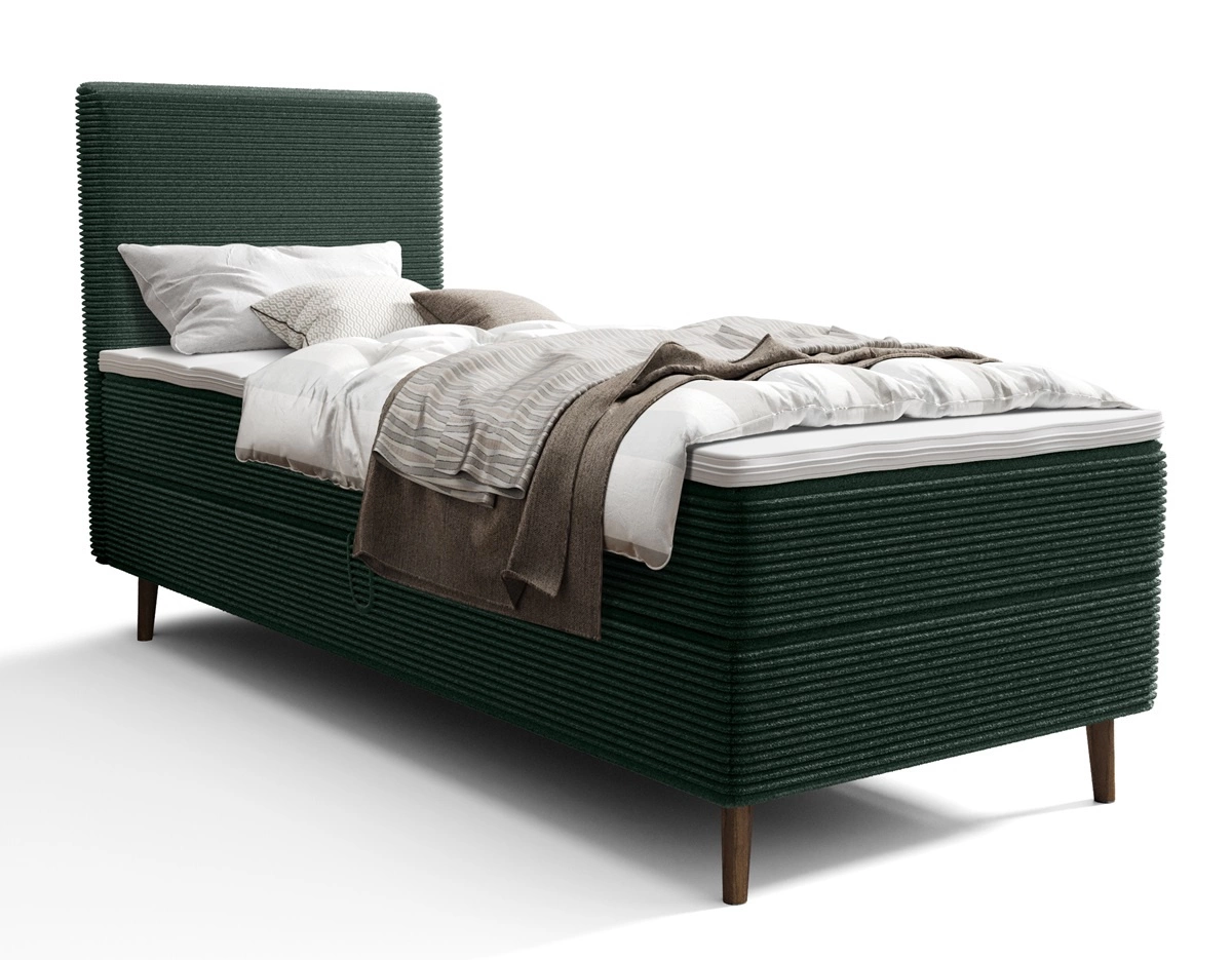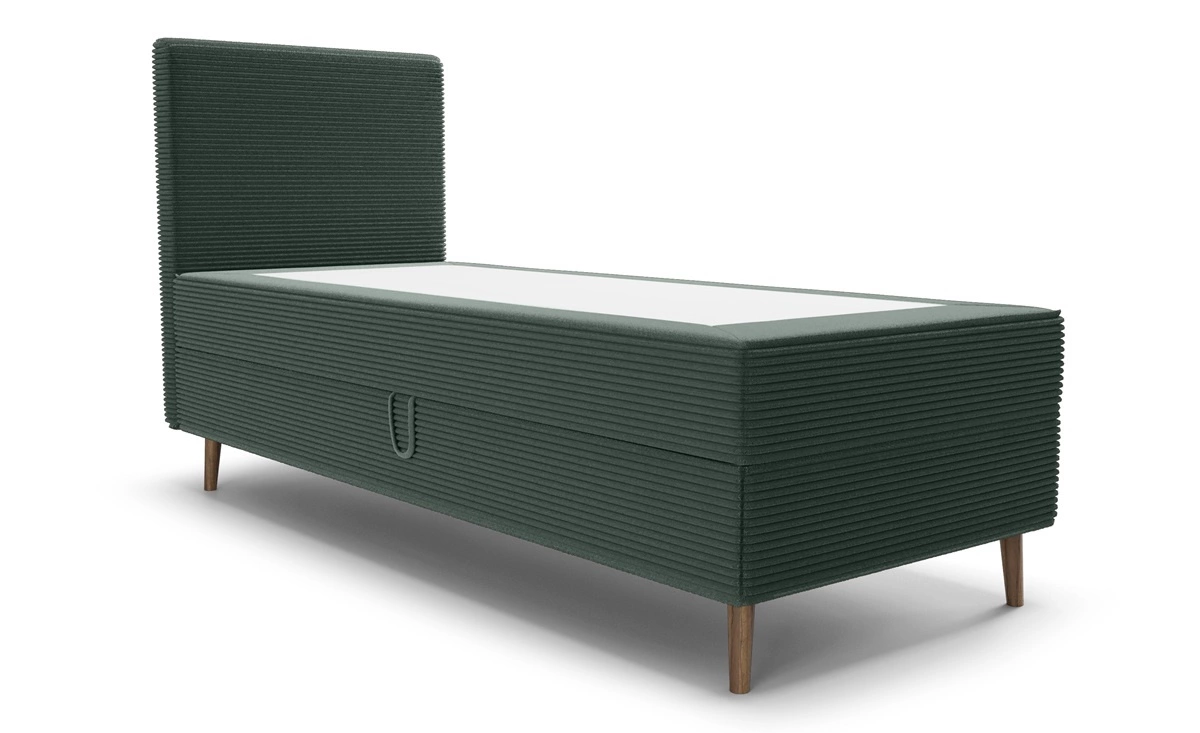Kontinentální postel Totti 80x200 zelená stylová postel s úložným prostorem trojrozměrná tkanina s výraznými pruhy