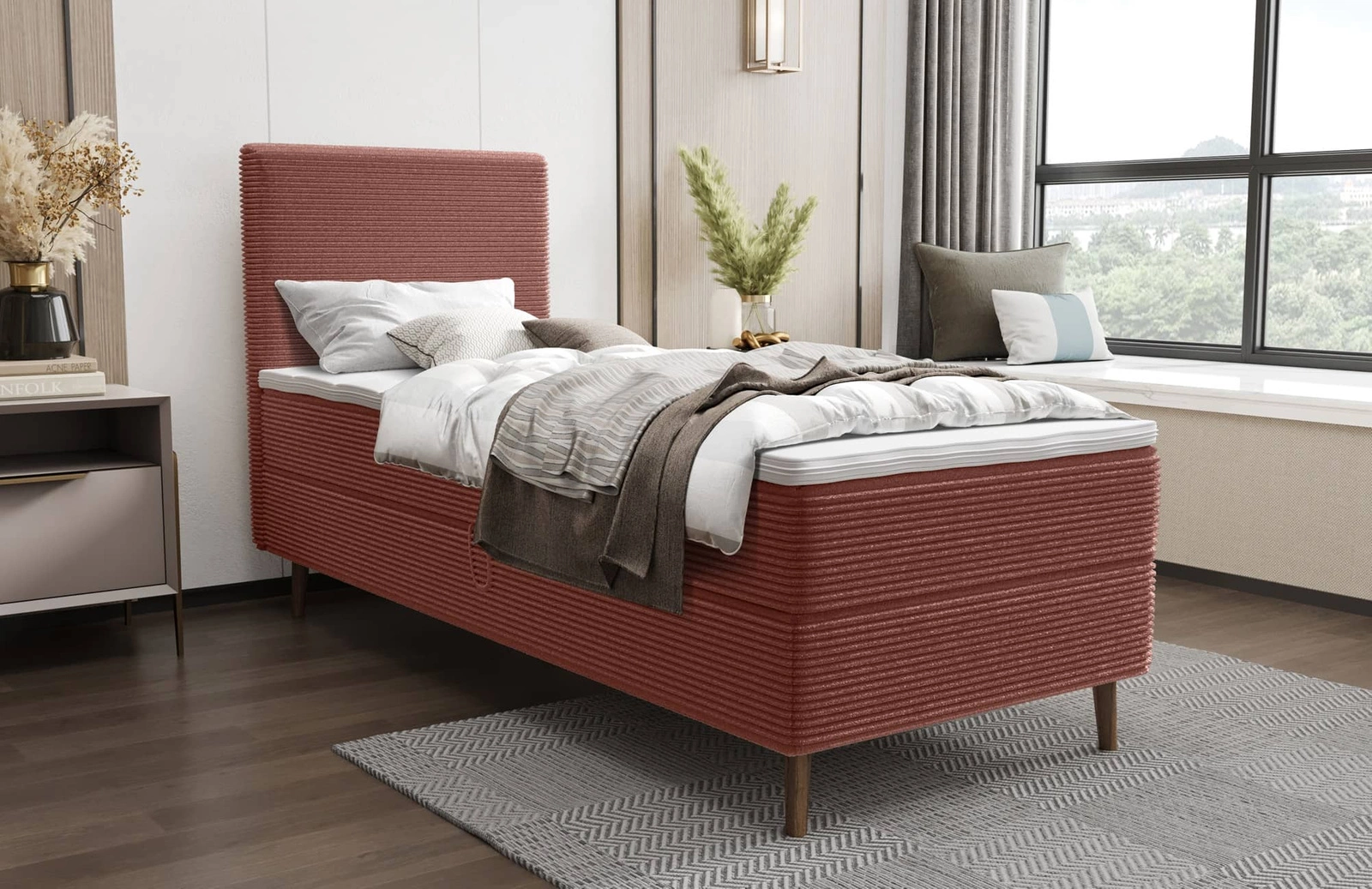 Kontinentální postel Totti 80x200 v indické růžové barvě je ideální volbou do každé ložnice nebo pokoje pro mládež.