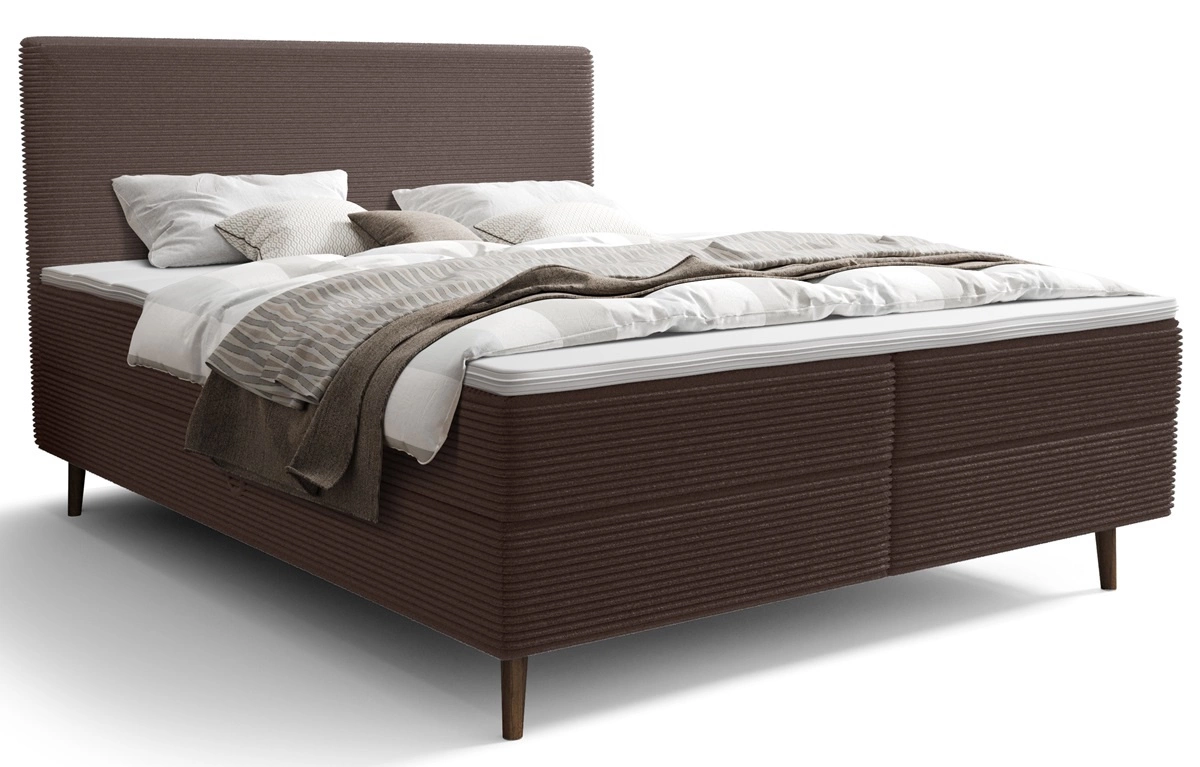 Kontinentální postel Totti 140x200 hnědá stylová postel s úložným prostorem trojrozměrná tkanina s výraznými pruhy