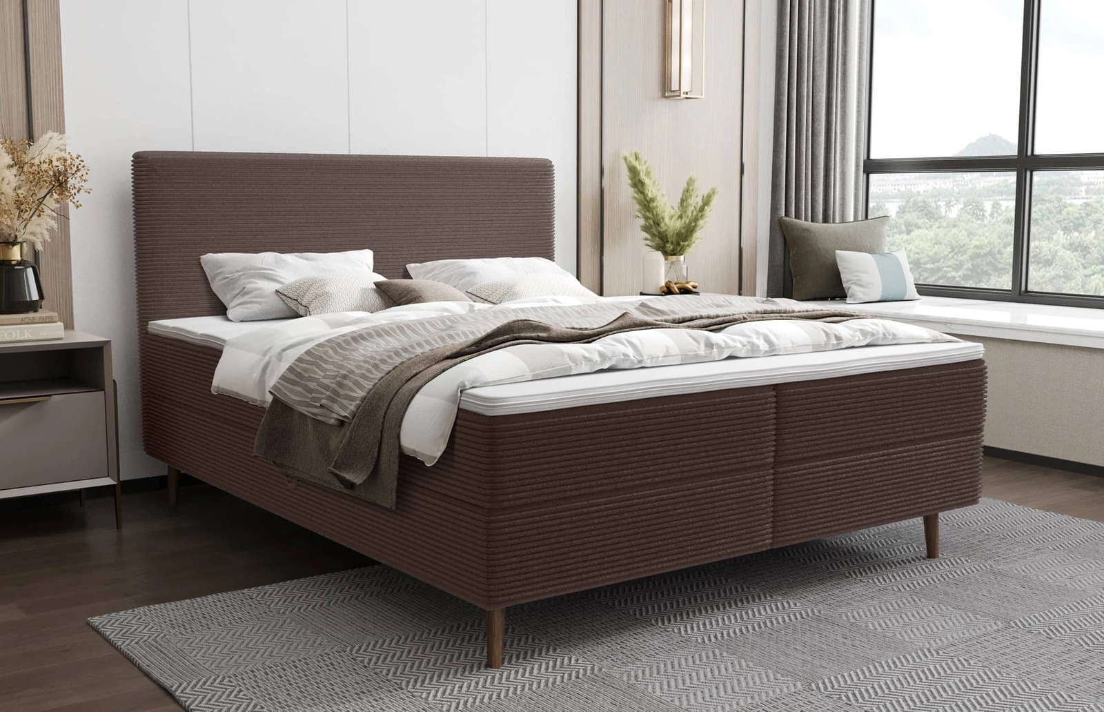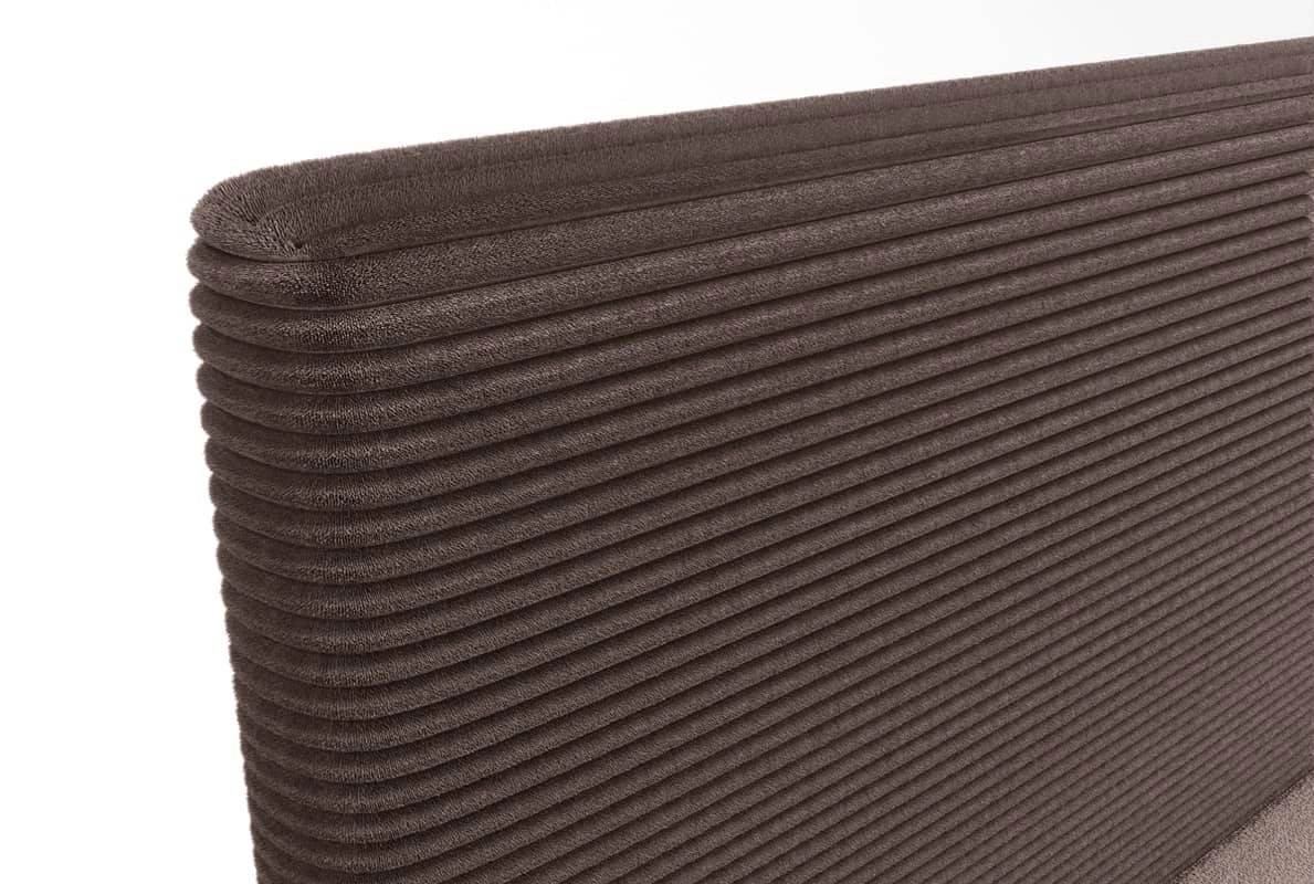 Konstrukce lůžka je pokryta měkká a příjemná na dotek tkanina velur Poso 04. Trojrozměrný manšestr čalounická tkanina s výraznými a silnými pruhy dodává zvláštní charakter a jedinečnou krásu. Materiál je velmi měkký, ale pevný a robustní. Čalounická látka Poso je odolnost proti oděru, a také snadno se udržuje v čistotě. Kontinentální postel tak bude dlouho vypadat esteticky a elegantně. Postel čalouněné je vyroben z vysoce kvalitních materiálů, které jsou odolné vůči vnějším vlivům, jako je čalounění nábytku a různé druhy nárazů.