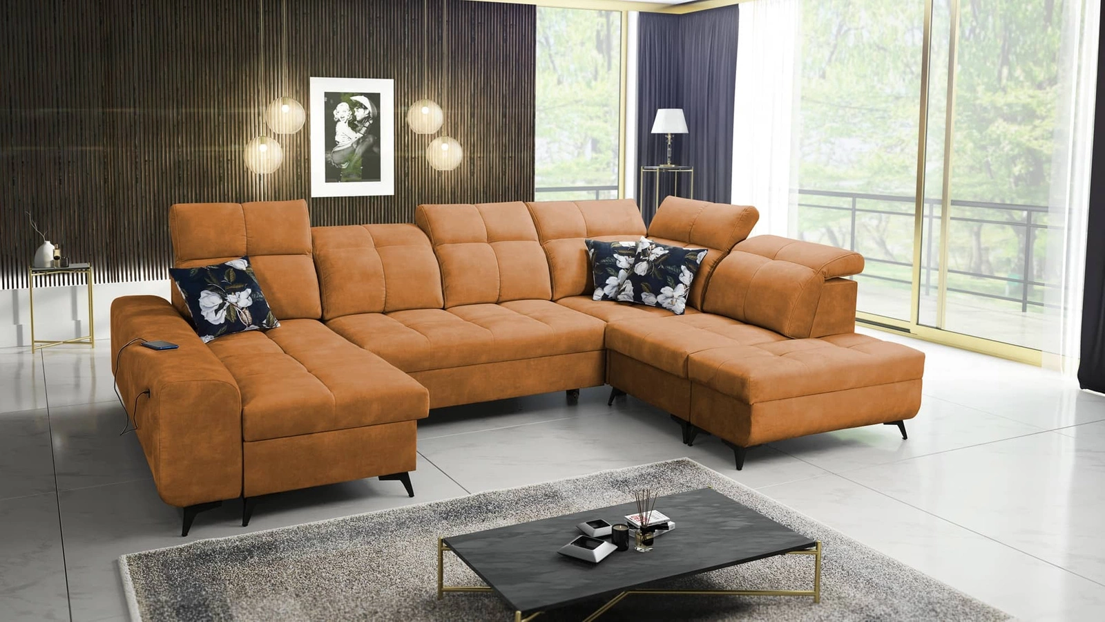 Mezi doplňky tohoto nábytku, které ocení všichni uživatelé, patří až šest nastavitelných opěrek hlavy, tři nádoby na lůžkoviny a nabíjecí zásuvka USB v boční části rohové skříně.