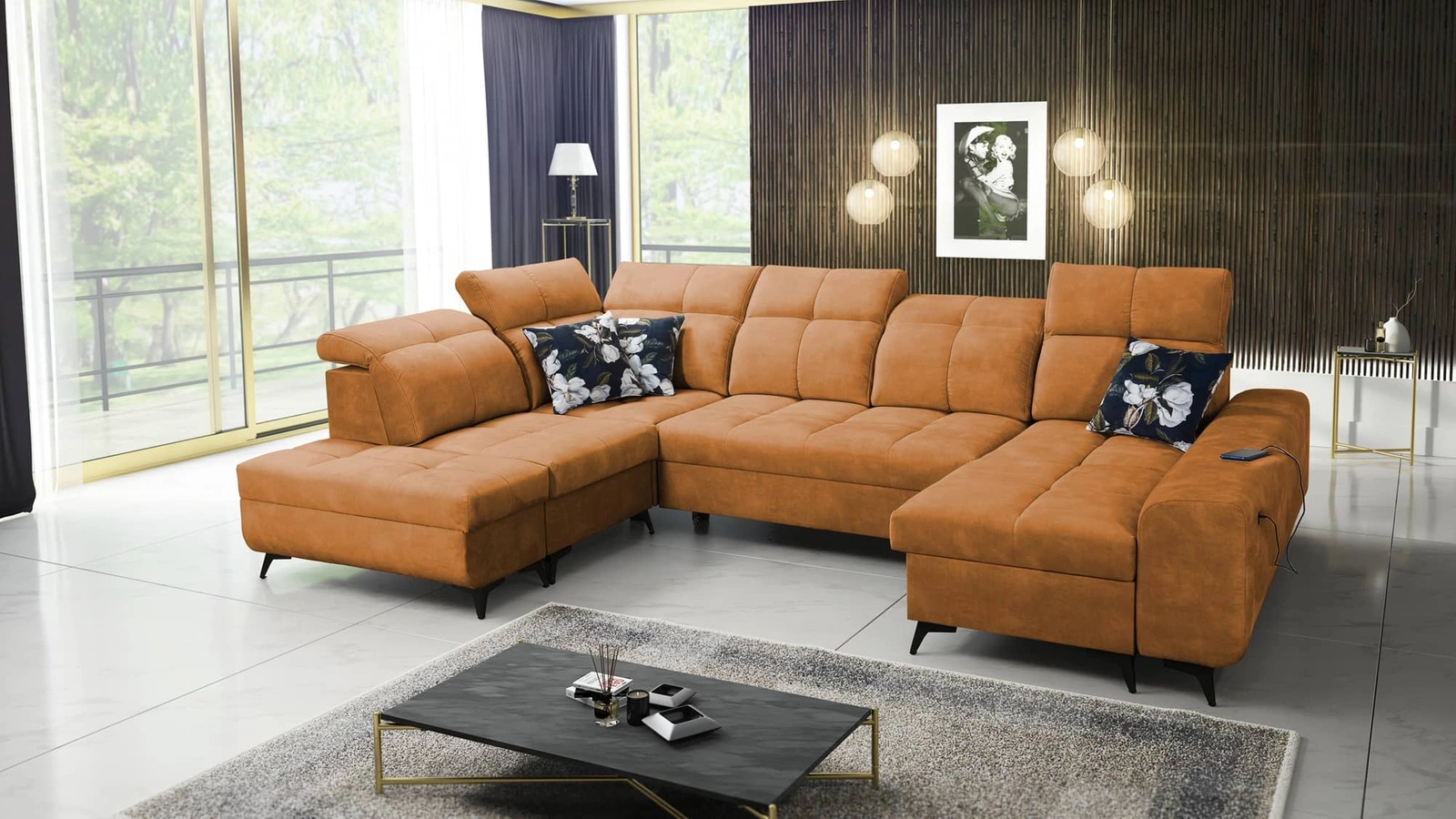 Mezi doplňky tohoto nábytku, které ocení všichni uživatelé, patří až šest nastavitelných opěrek hlavy, tři nádoby na lůžkoviny a nabíjecí zásuvka USB v boční části rohové skříně.