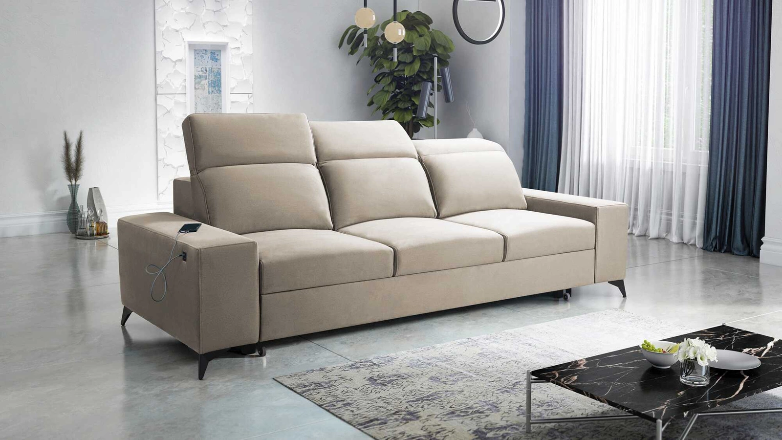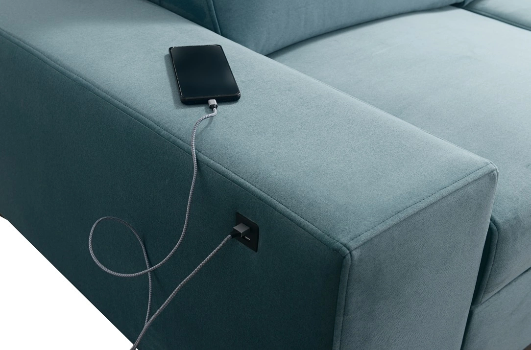 Mezi doplňky tohoto nábytku, které ocení všichni uživatelé, patří funkce spaní a nabíjecí zásuvka USB na boku pohovky.
