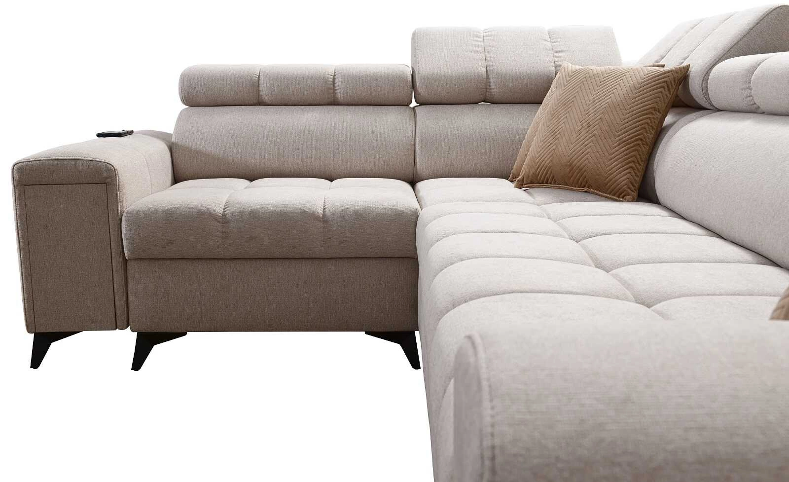 Narożnik z pojemnikiem na pościel Bolmso III Beżowy narożnik z funkcją spania