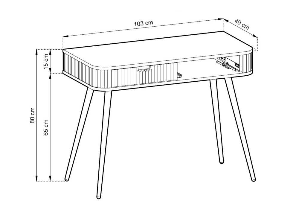 Nábytek je vyroben z 2 zásuvky. Konzola se zásuvkami zaručuje pohodlné a bezproblémové používání a trvanlivost celého nábytku po mnoho let používání. Díky svému tvaru a všestrannosti se konzola skvěle hodí pro použití v domácnosti jako toaletní stolek, který usnadní organizaci dámské kosmetiky a drobností, i jako stůl pro domácí kancelář.