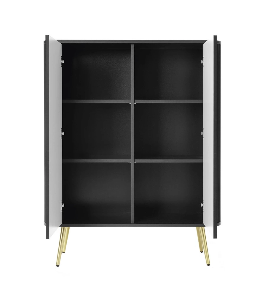 Komoda je vyrobena ze 2 dveře. Komoda zaručuje pohodlné a bezproblémové používání a trvanlivost celého nábytku po mnoho let používání. Nadčasová černá si najde cestu do jemných aranžmá, což z komody Zoya dělá dokonalou komodu do obývacího pokoje s originálním designem povrchovou úpravou, komody do obývacího pokoje nebo komody do ložnice v moderním stylu. Moderní komody lze s úspěchem použít i jako kancelářský nábytek.