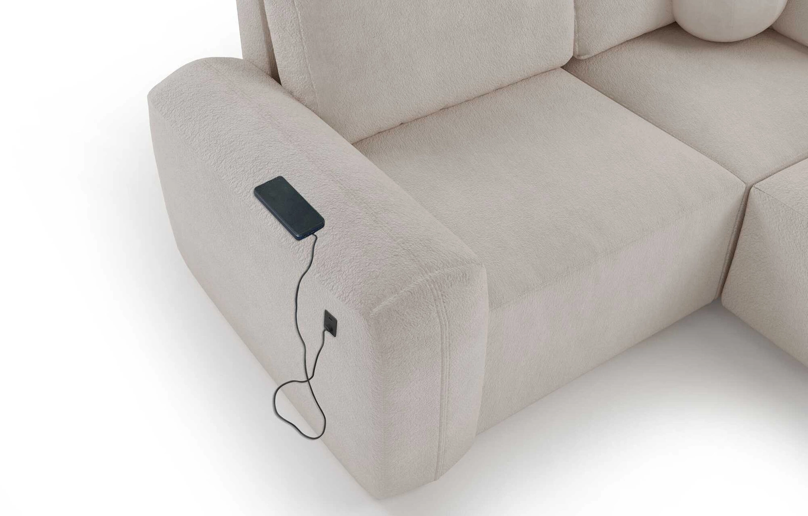 Doplňky tohoto nábytku, které ocení všichni uživatelé, jsou kontejner na lůžkoviny a nabíjecí zásuvka USB na boku rohové skříně.
